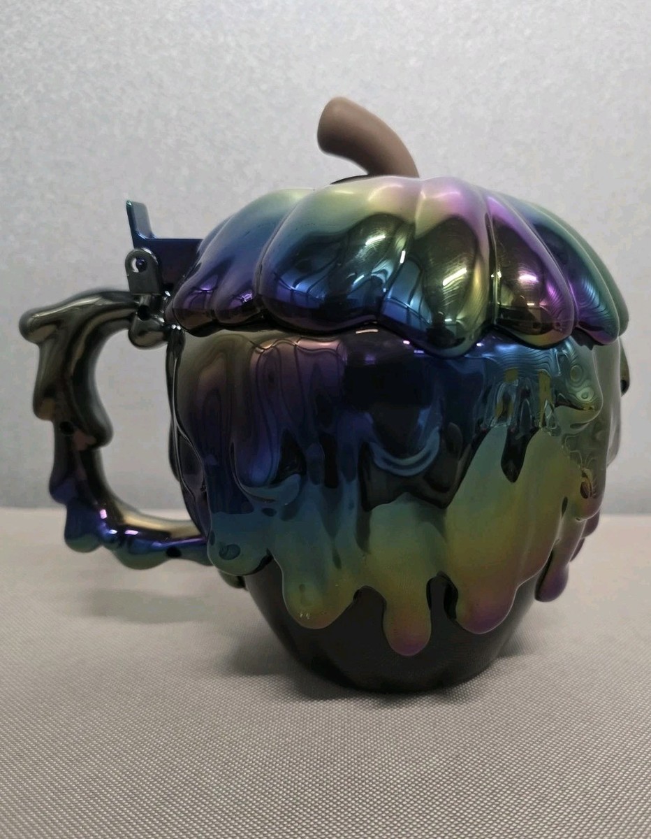 The Disney Parks Halloween Iridescent Black Poison Apple Stein Mug Disneyland 2023 is a collectible item originating from Disney. This contemporary piece features a design inspired by Snow White and the character of the Poison Apple, making it a unique and sought-after souvenir for Disneyland visitors. With its distinctive theme and limited release year, this mug is sure to be a prized possession for Disney enthusiasts and collectors alike.