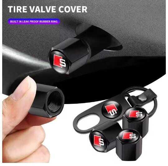 Audi S Line Tire Valve Caps with Keychain Car Wheel Stem Covers