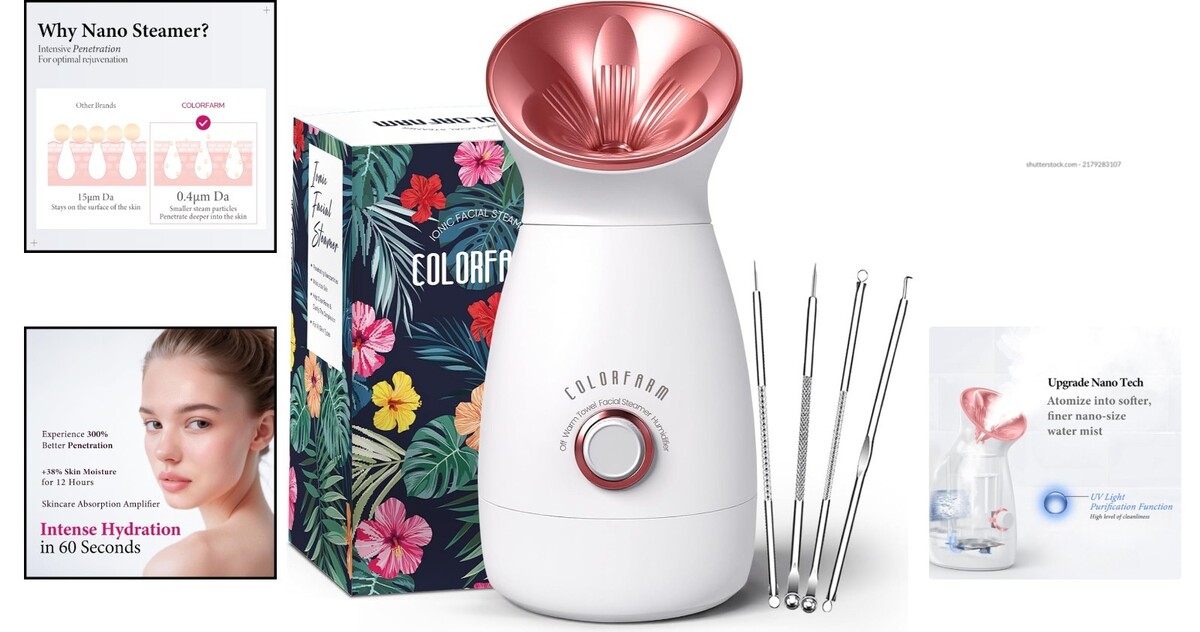 Advanced Nano-Ionic Technology: Our facial steamer produces ultra-fine steam particles that penetrate the skin 20X deeper than regular steam, ensuring maximum absorption of serums and moisturizers.