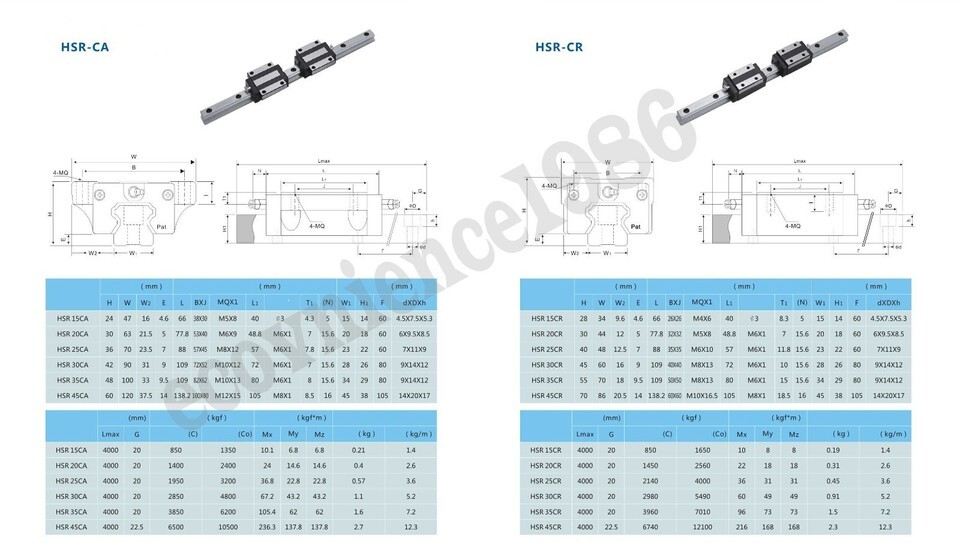 2 pcs HSR25-2000mm Linear rail & 4pcs HSR25CA Block Bearing