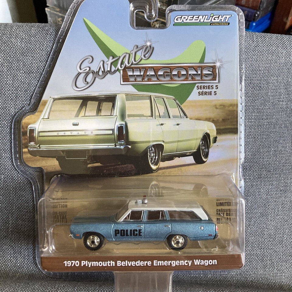 GREENLIGHT 1/64 SCALE ESTATE WAGONS 1970 PLYMOUTH BELVEDERE POLICE WAGON!