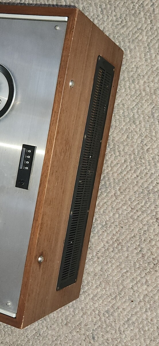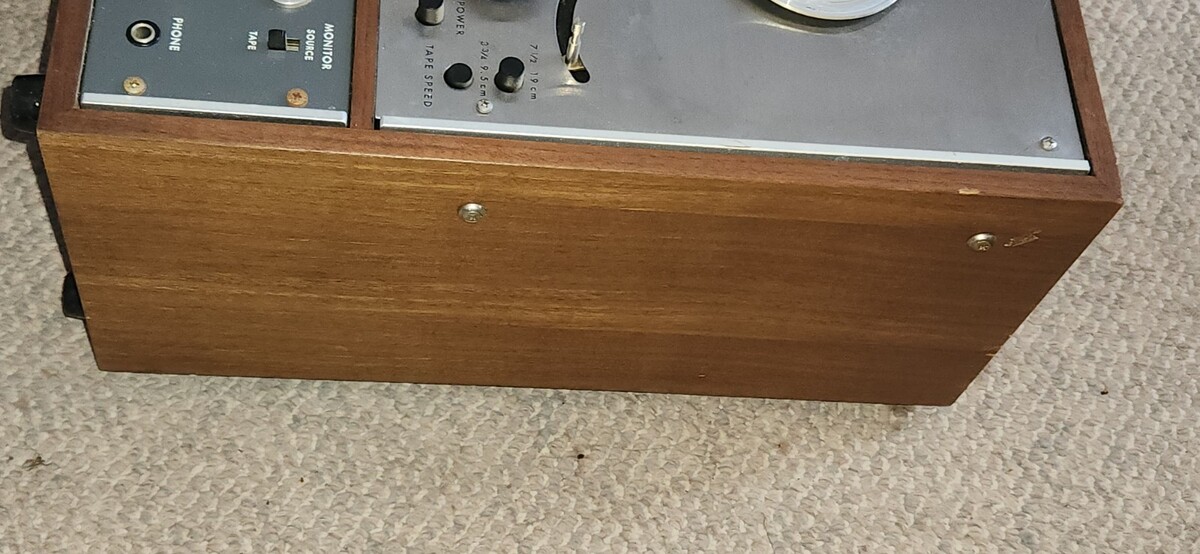 Vintage reel to reel player. Do not have a cord to test. Had been stored in a rough environment before we obtained. Selling as is. Has wear issues. Unknown condition of the insides.