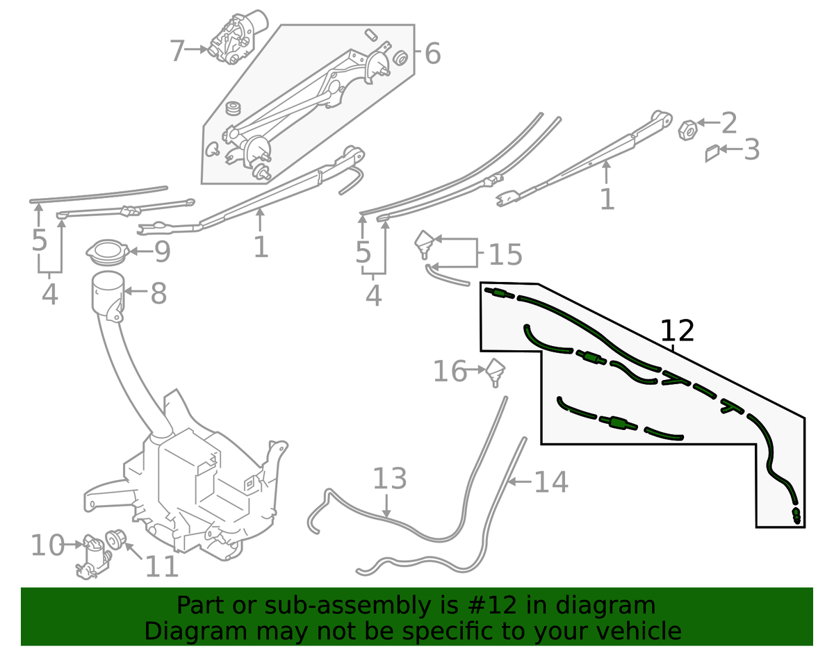 21-225 SUBARU OUTBACK LEGACY FRONT WINDSHIELD UPPER WIPER WASHER HOSE PIPE LINE