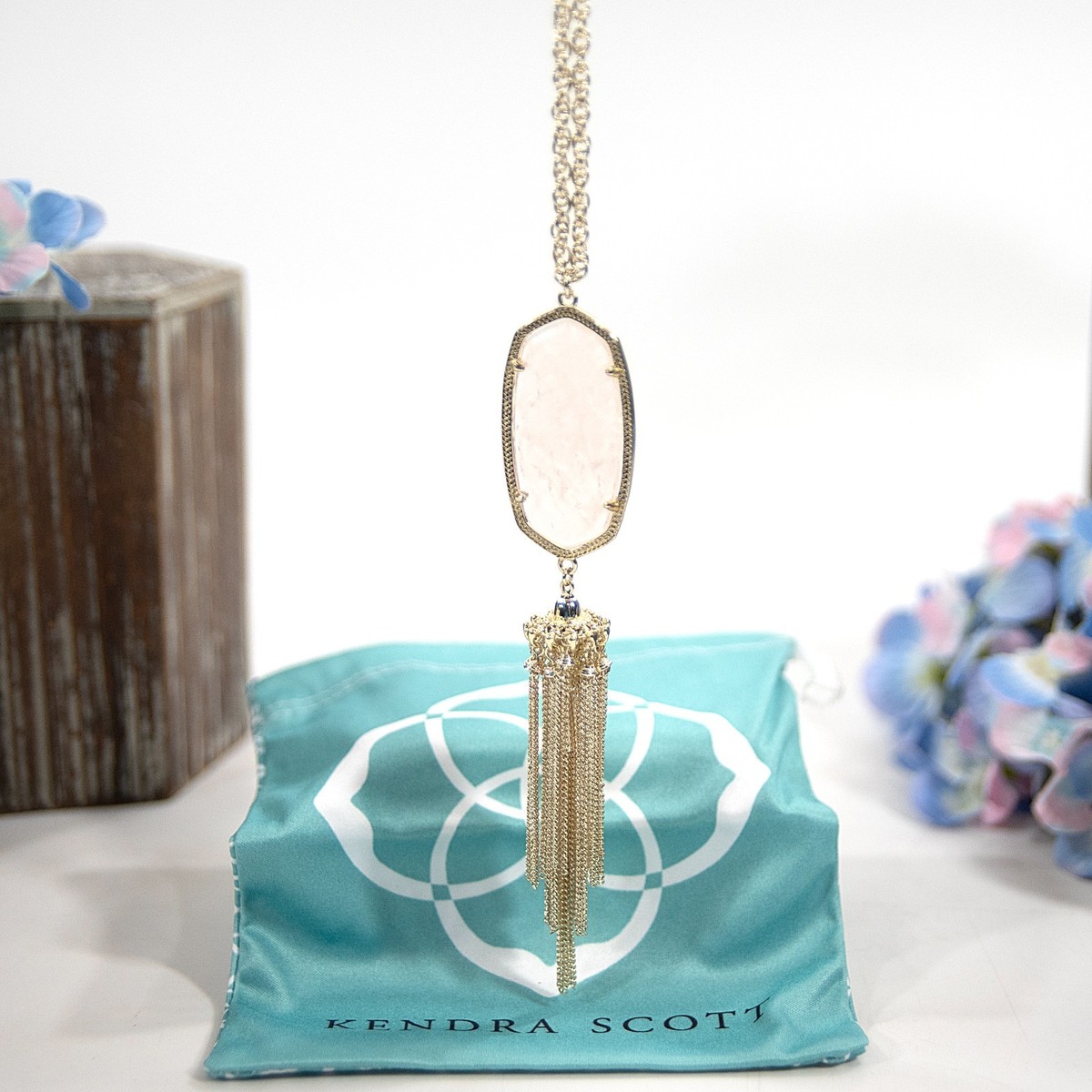 Kendra Scott Rayne Rose Quartz Gold Plated Long Pendant Necklace NWT