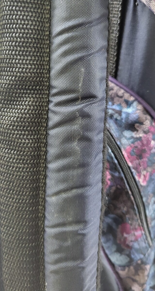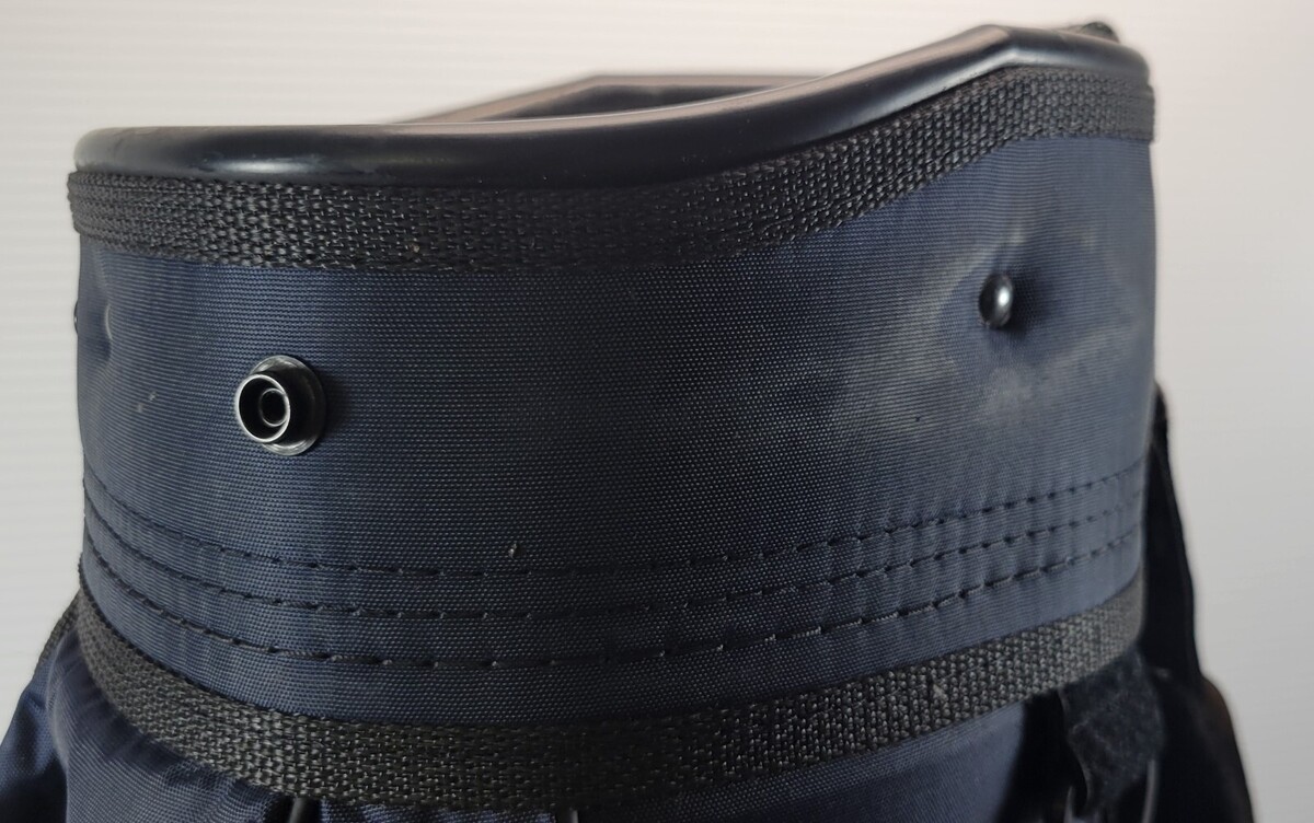 Bag is in used condition with some signs of use and wear including scuffs, marks, stains, and rust to the shoulder strap hardware, but in overall good condition with life left to it. There is a slight tear in the mesh pocket pouch.
