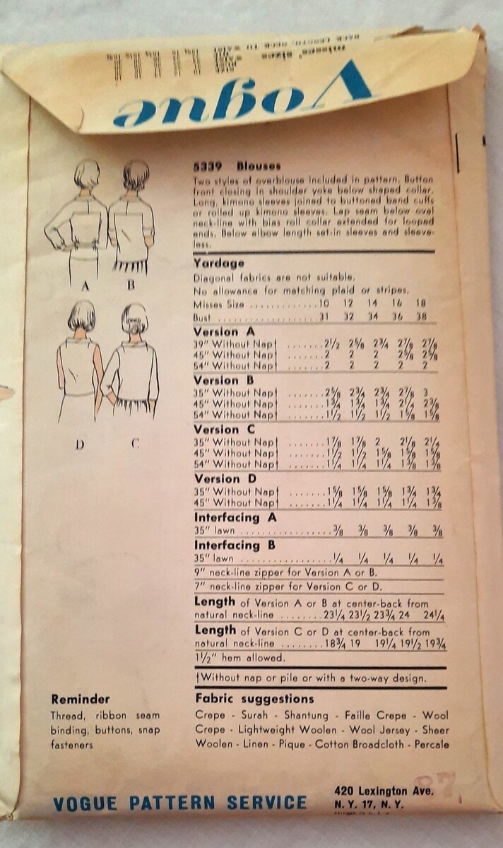 Vogue Pattern 5339 Vintage 60's Blouses Mcm and 19 similar items