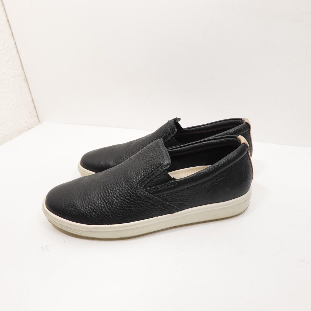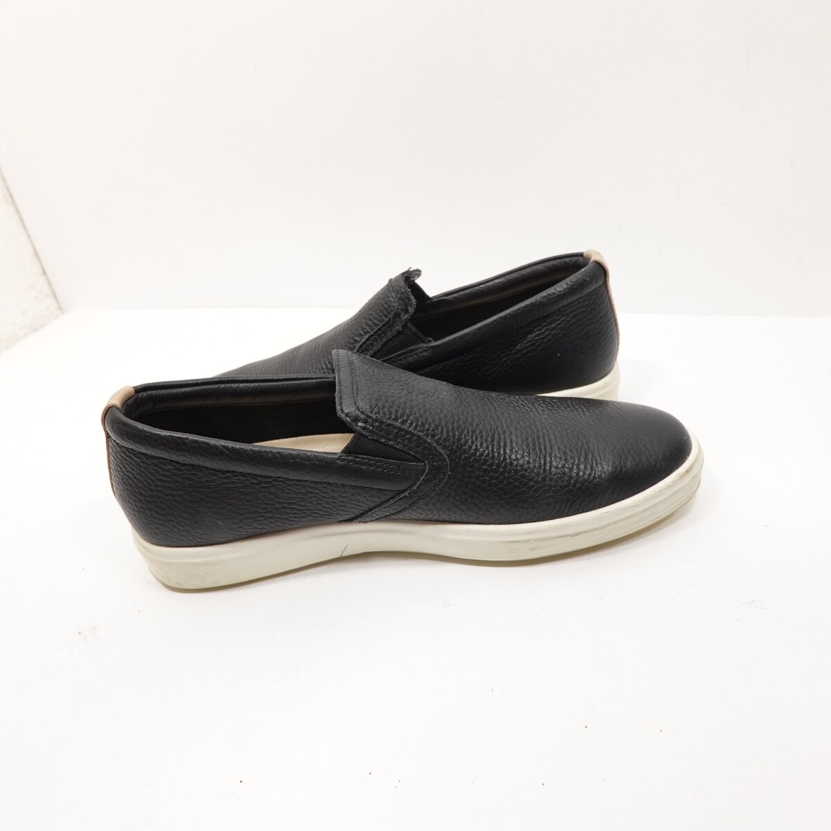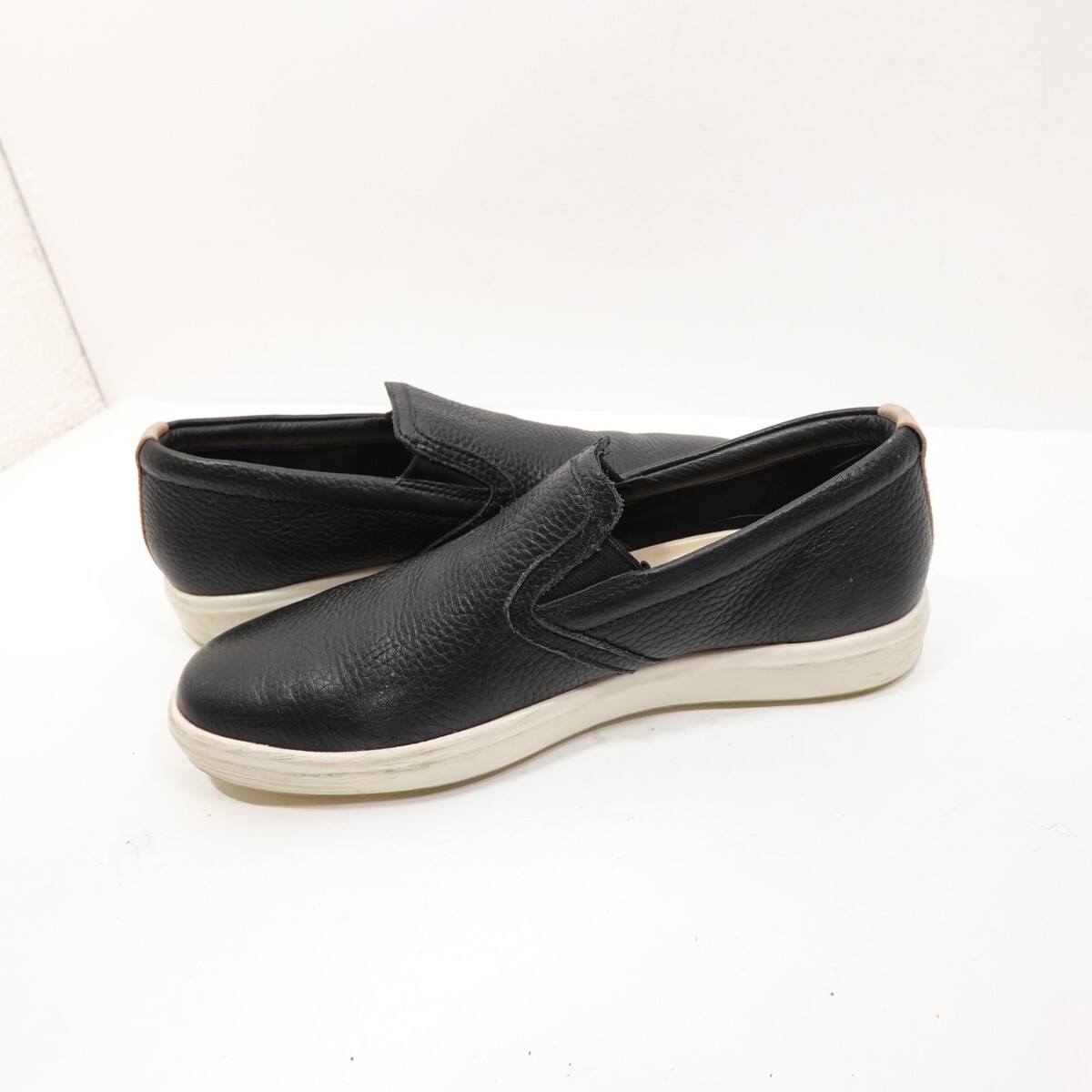 ECCO Women's Soft 7 Black Pebbled Leather Slip-On Sneakers Size 7-7.5