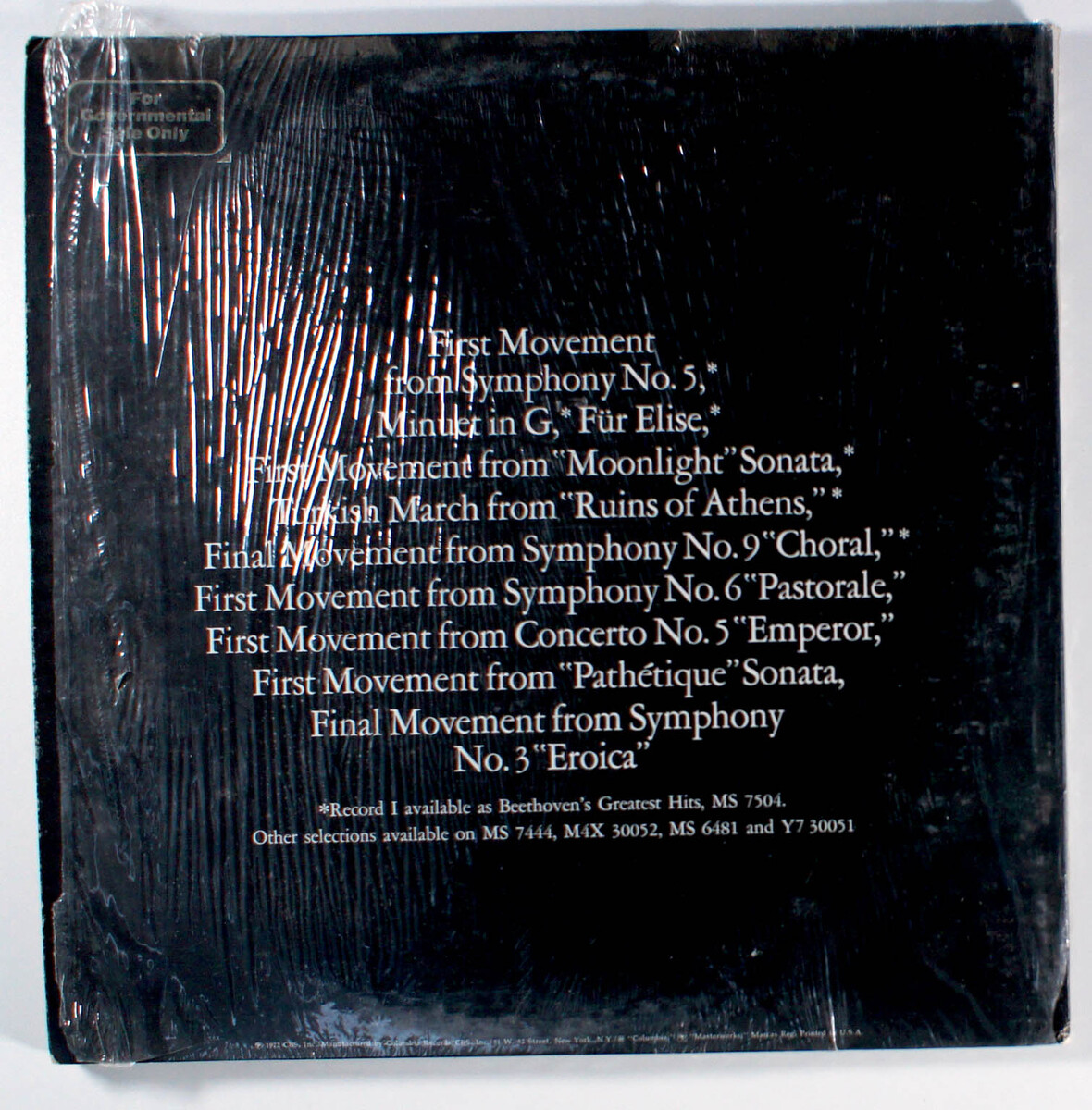 Beethoven: Greatest Hits Album, by Ludwig van Beethoven, is a double-LP compilation featuring stellar performances by renowned conductors and orchestras, including Leonard Bernstein with the New York Philharmonic, Eugene Ormandy leading the Philadelphia Orchestra, and George Szell with the Cleveland Orchestra. This collection stands out for its all-star lineup of artists, such as pianists Philippe Entremont, Leon Fleisher, and Rudolf Serkin, along with the Mormon Tabernacle Choir, making it a unique gathering of top classical talent interpreting Beethoven's works. Historically significant as part of Columbia's popular "Greatest Hits" series in classical music, it helped introduce Beethoven's masterpieces to broader audiences during a time when such crossover compilations were innovative for the genre. Fan-favorites include the dramatic opening movement of Symphony No. 5, the serene Adagio from Moonlight Sonata, the beloved Fr Elise, the pastoral Symphony No. 6, and the triumphant choral finale from