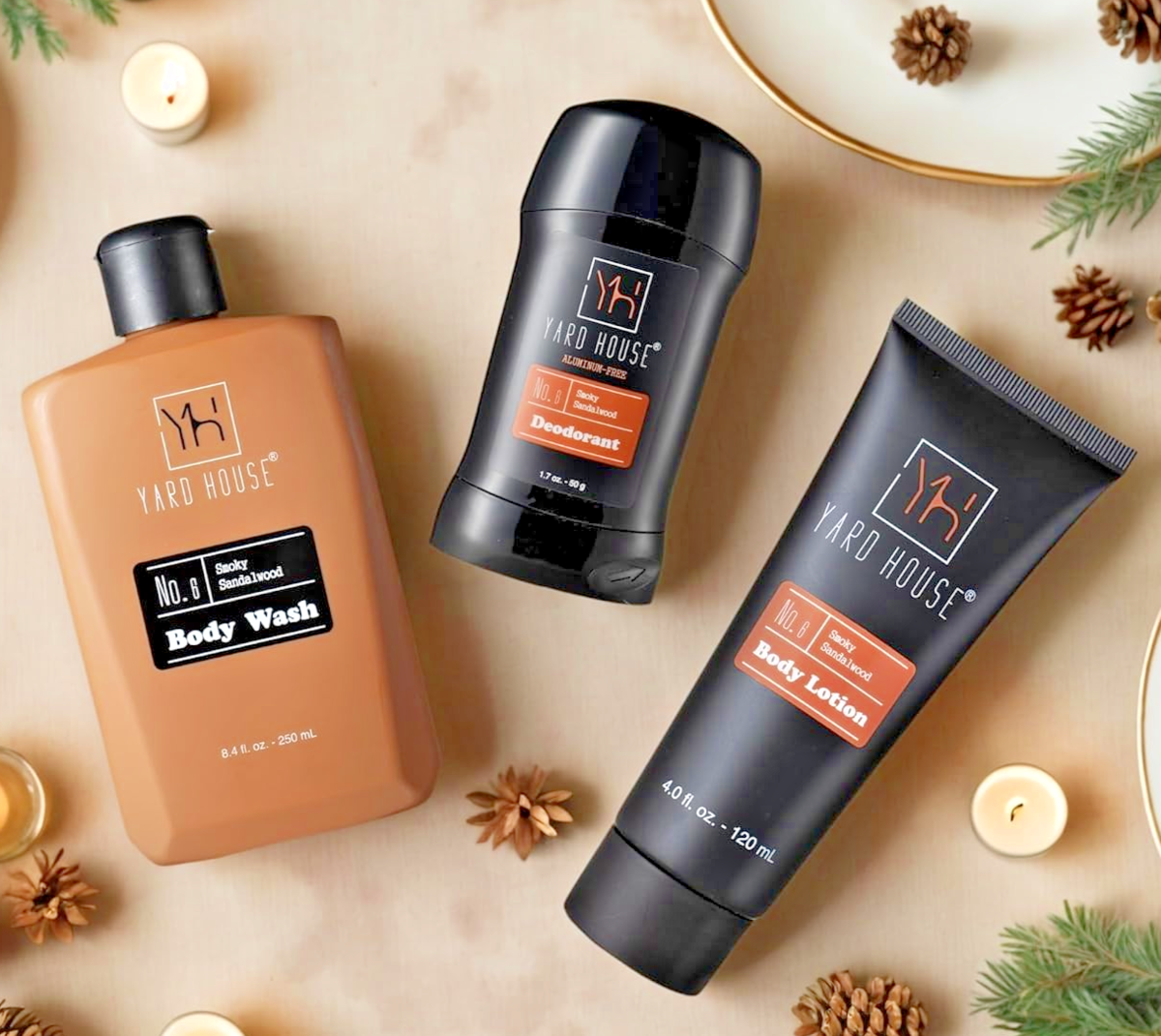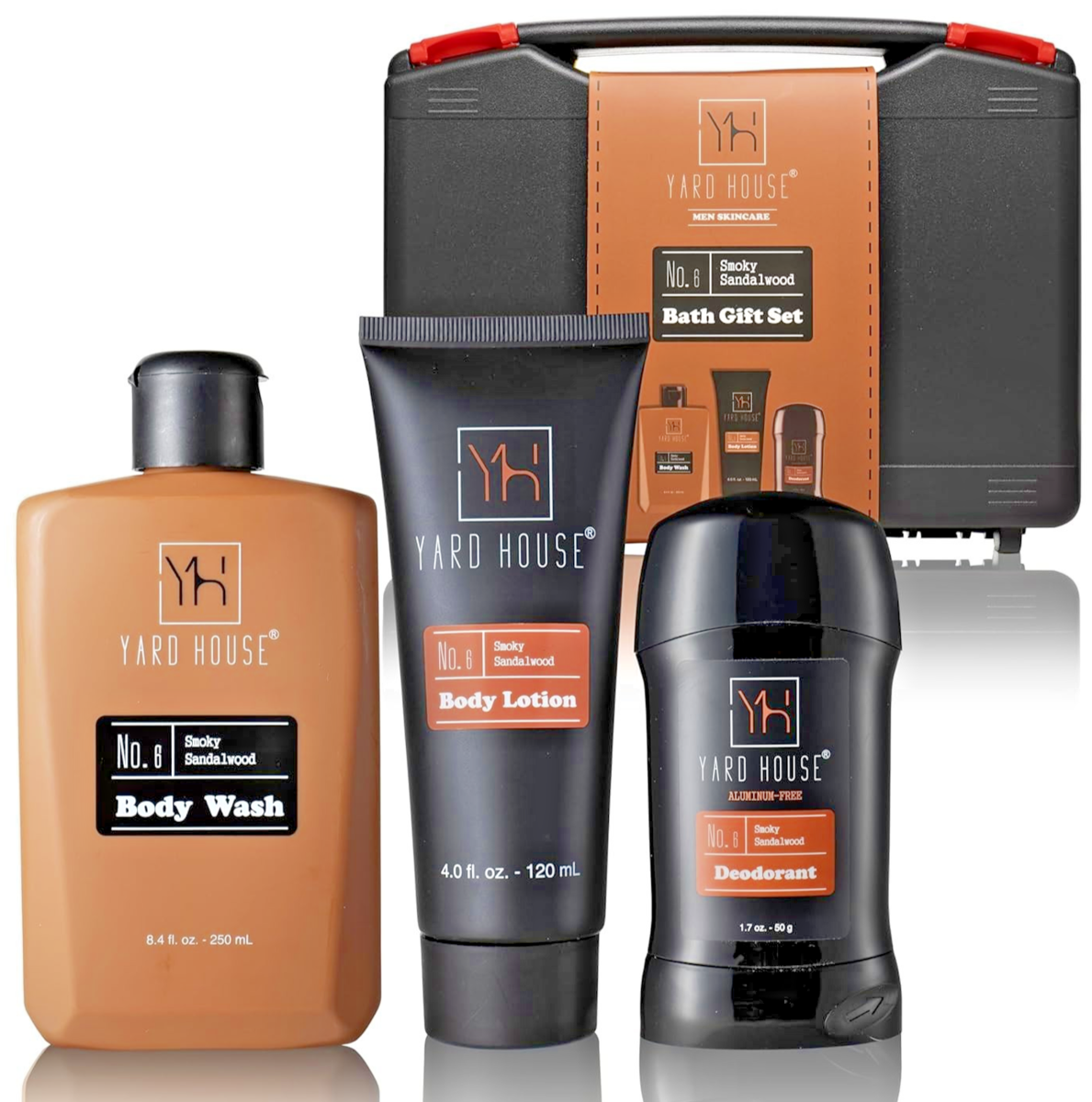 Sandalwood scent. This premium 4-piece set features a full-size body