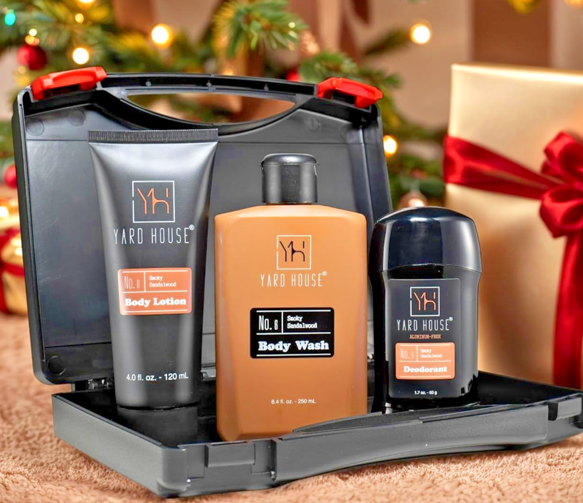 oz), Body Lotion (4.0 fl oz), and Deodorant Stick (75g) in a sturdy tool