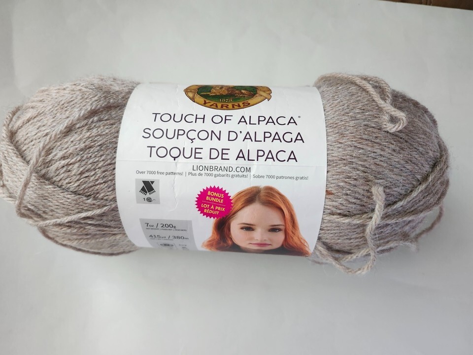 Made in Turkey Lion Brand Touch Of Alpaca Yarn in Taupe is a versatile and luxurious choice for crafters. Made from a blend of Alpaca and Acrylic, this yarn offers a soft and warm texture, perfect for various projects. With a weight of 7oz and a length of 380m, this skein is ideal for creating medium-weight items such as blankets, scarves, and sweaters. The rich taupe color adds a touch of elegance to any project, making it a popular choice among knitters and crocheters alike.