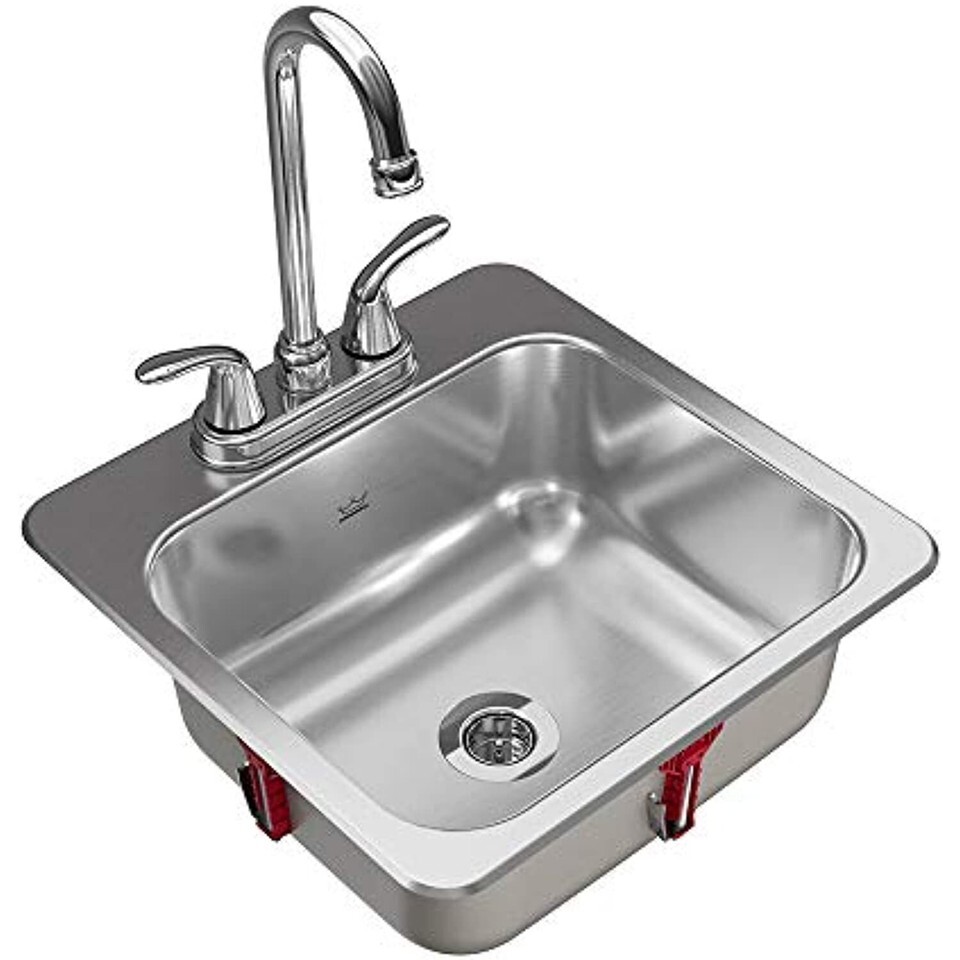 Product Description The Kindred FBFS602NKIT topmount/drop-in single bowl sink kit is perfect for a bar or laundry room. Crafted with smooth edges, this sink pairs perfectly in contemporary or transitional spaces. The included chrome faucet and strainer combined with a sturdy stainless steel sink is durable enough to handle any clean up job with ease. This topmount/drop-in sink is equipped with EZ Torque, thoughtfully designed to simplify installation. From the Manufacturer The Kindred Essentials FBFS602NKIT features a single bowl designed for use in a bar, laundry room or utility room. The sink kit includes a satin finish sink, chrome faucet and strainer, equipped with EZ Torque for a quick and easy installation process. The all-in-one sink kit measures 15-in left to right and 15-in front to back, while the bowl measures 6-in deep. The high quality top-mount sink is made in Canada of 20 gauge stainless steel and has a sound dampening pad to reduce noise and vibrations. Kindred sinks are known for their superior patent no-welding production techniques, high quality and EZ Torque installation. The minimum cabinet size for this sink is 18-inches.