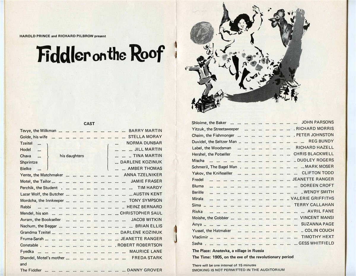 Fiddler on the Roof Theatreprint Her Majesty's Theatre London Barry Martin 1967