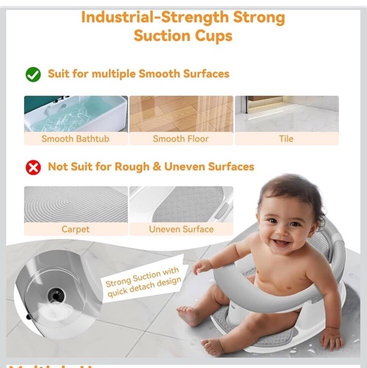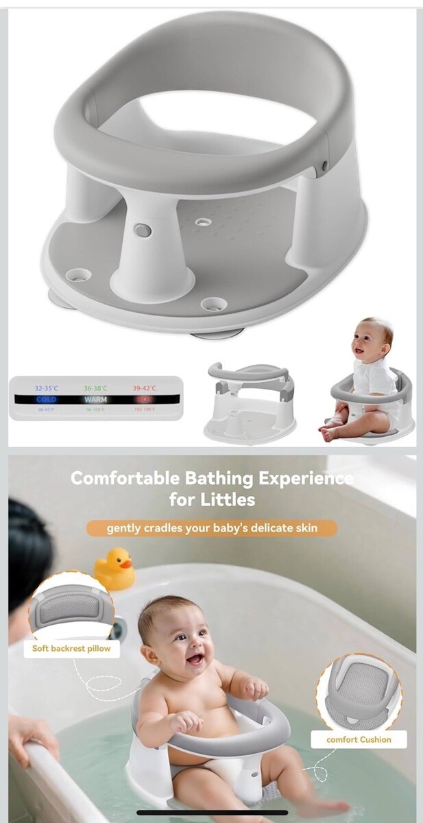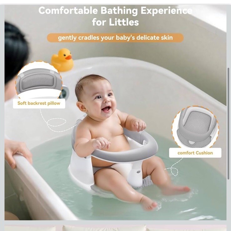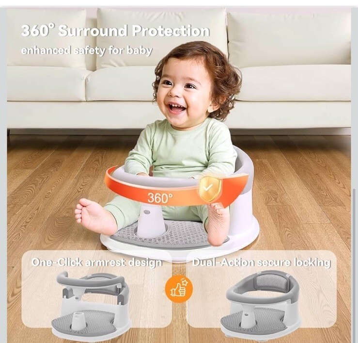 Baby Bath Seat for Babies 6 Months & Up - 360ยฐ Protection Seats Grey