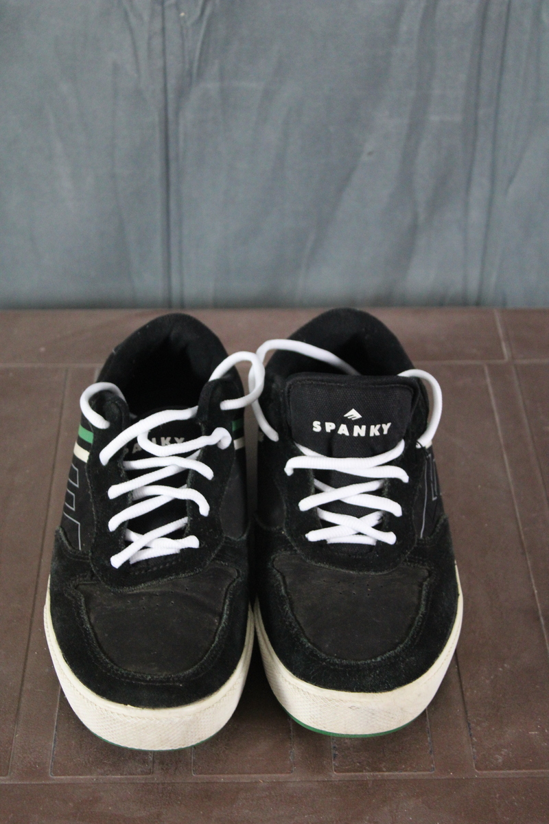 Up for sale is a pair of skateboard shoes. They are Emerica Spanky's with a black base colour with green and white trim. What a great pair of shoes do not miss out on them.