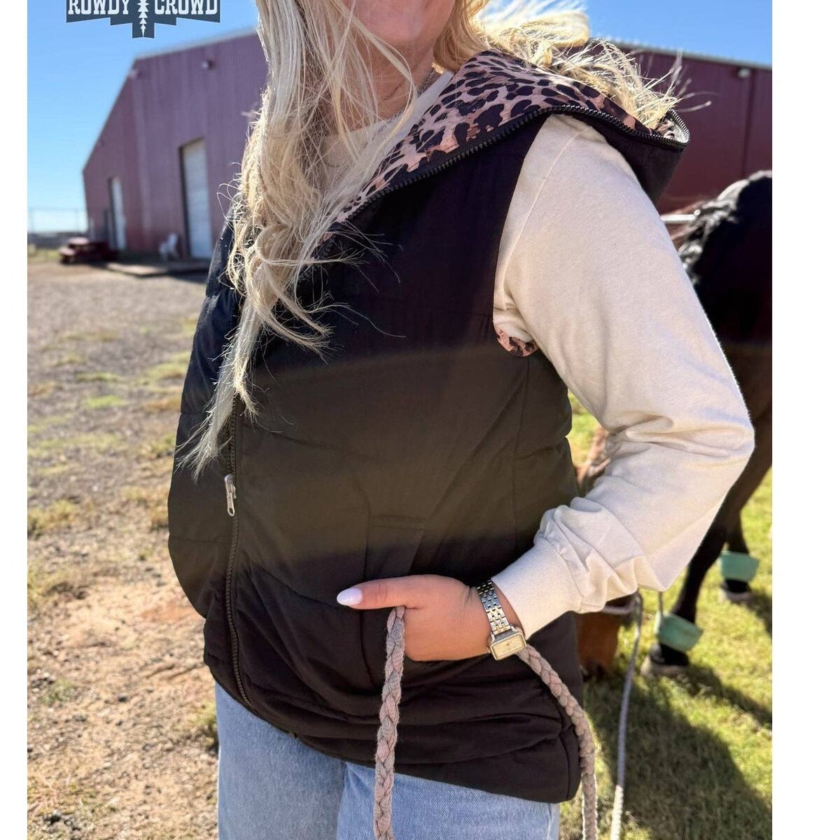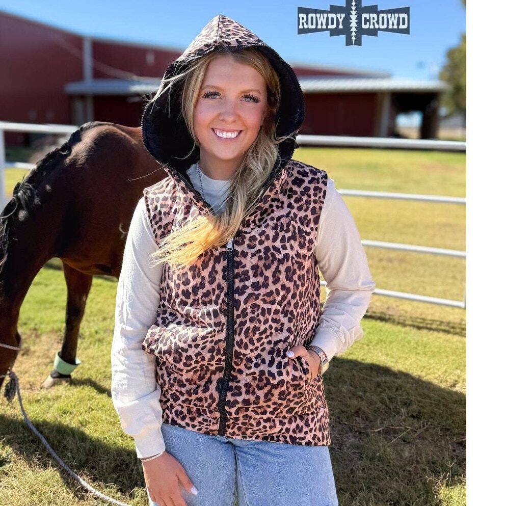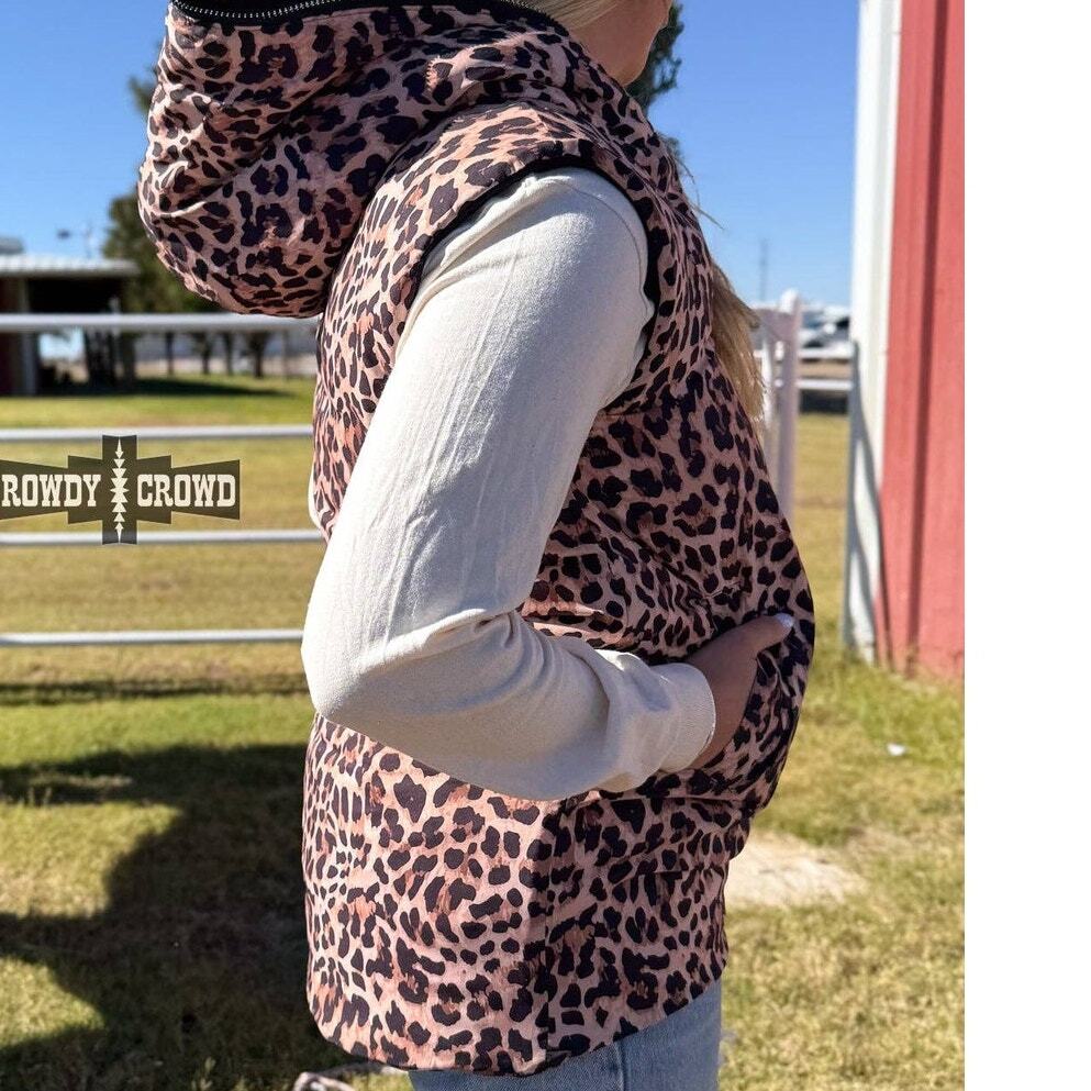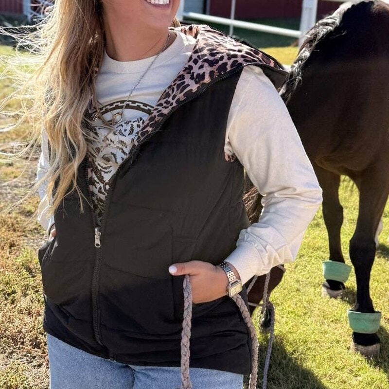 Add instant versatility to your wardrobe with the Vagabond Reversible Vest. This clever hooded puffer vest gives you two completely different looks in one garment?flip from sleek solid black to bold leopard print whenever the mood strikes, making it the ultimate travel and everyday essential.