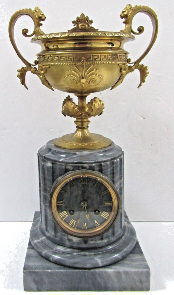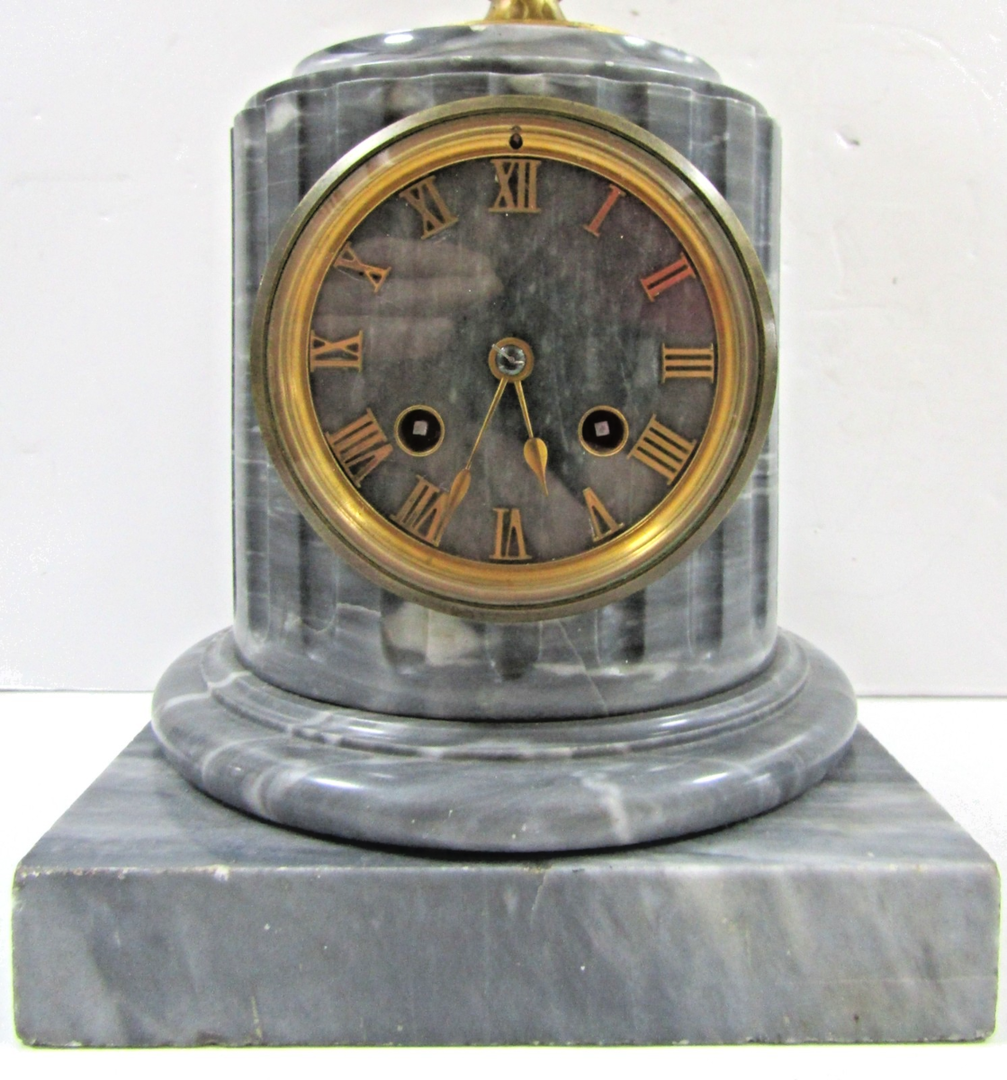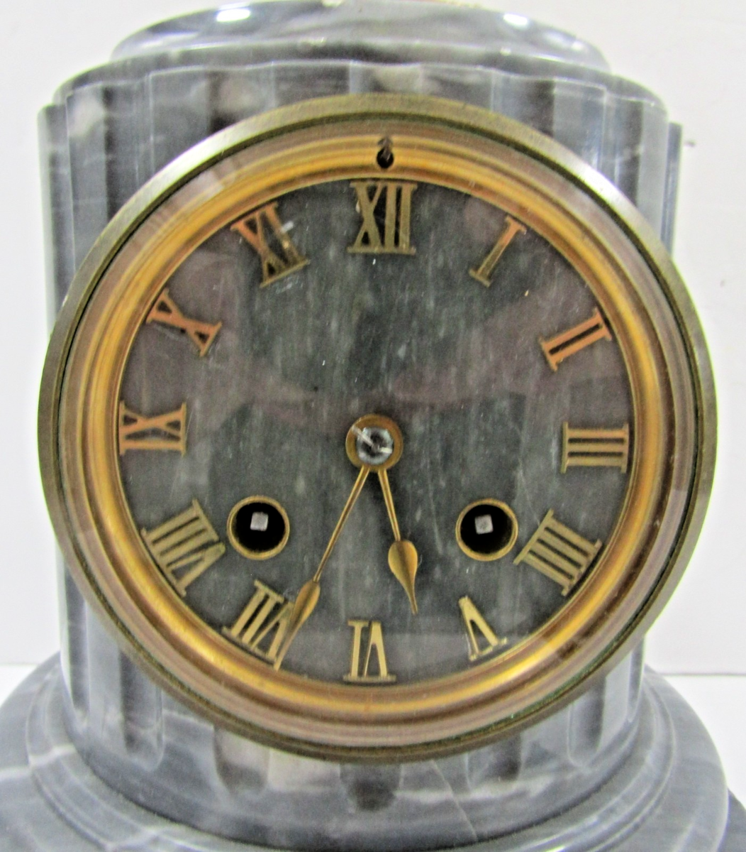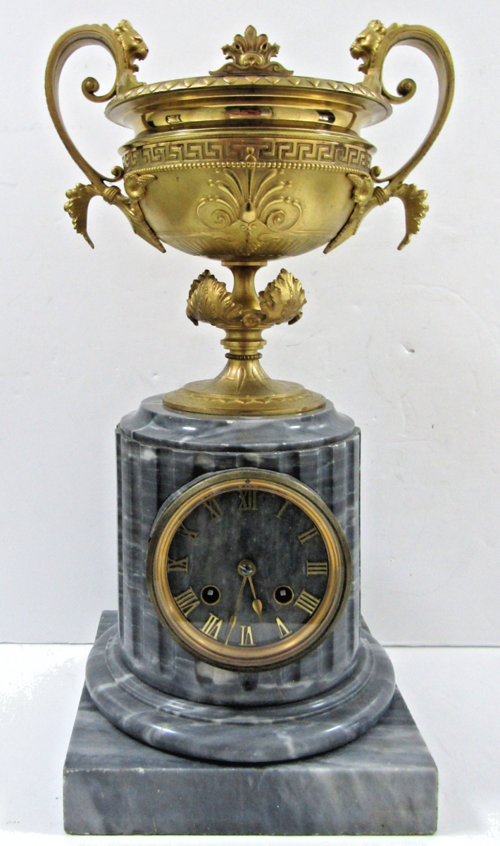 French Empire Gilt Bronze Brûle-Parfum Onyx Columnar Mantle Clock, early 19th c.