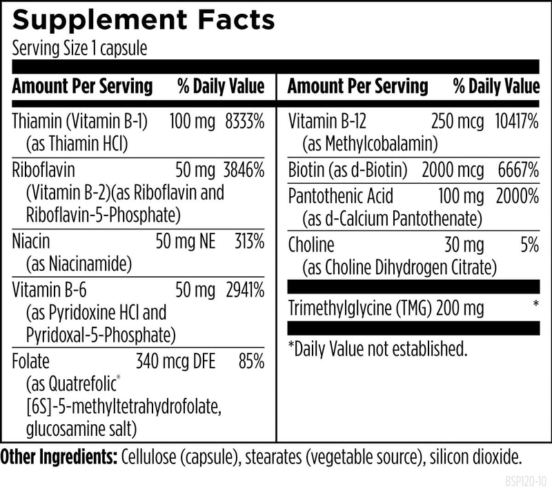 Methylated B12 Folate: Includes Quatrefolic folate and methylcobalamin (B12) for high bioavailability, solubility, and stability. Also features B1, B3 (niacin), riboflavin, B6, and biotin.*