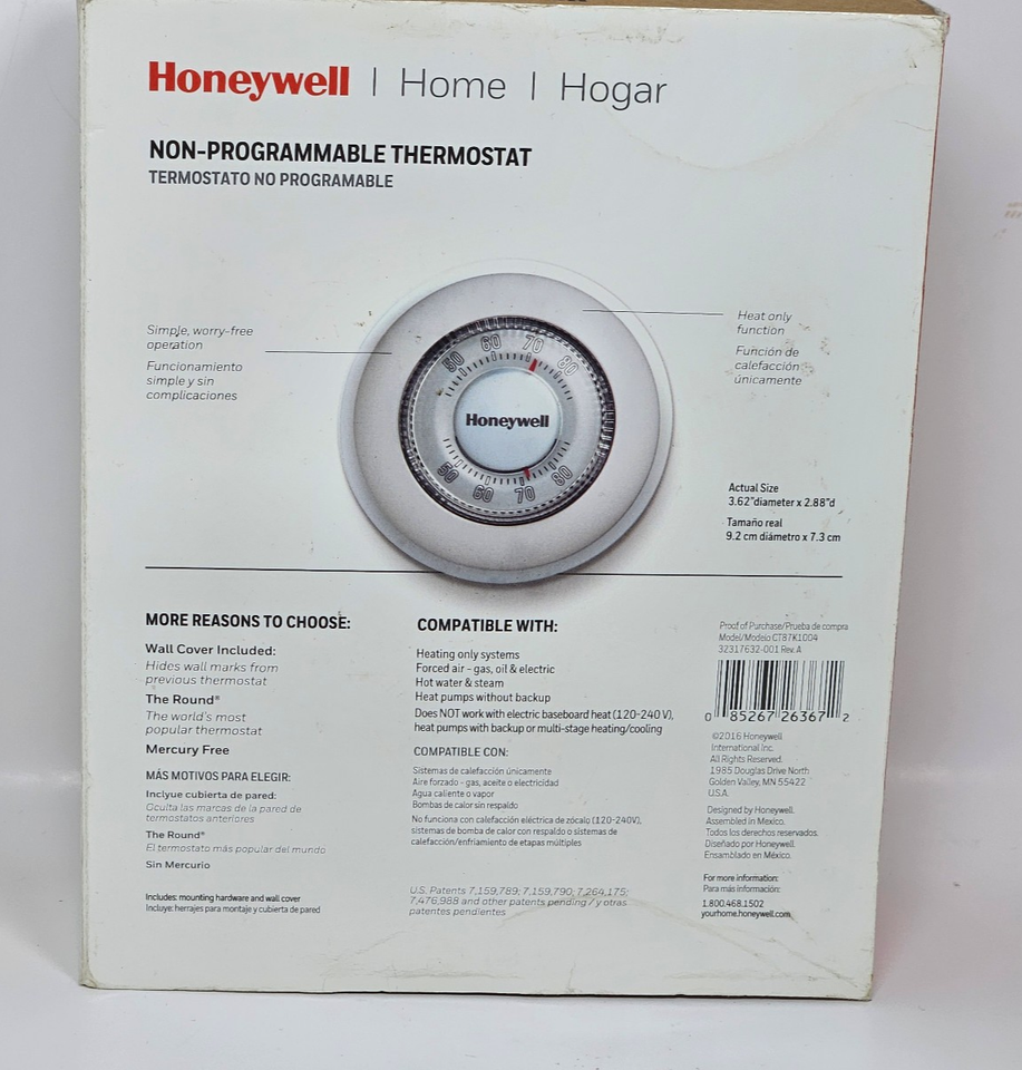 Honeywell CT87K1004 The Round Manual Thermostat Non-Programmable - Heat Only