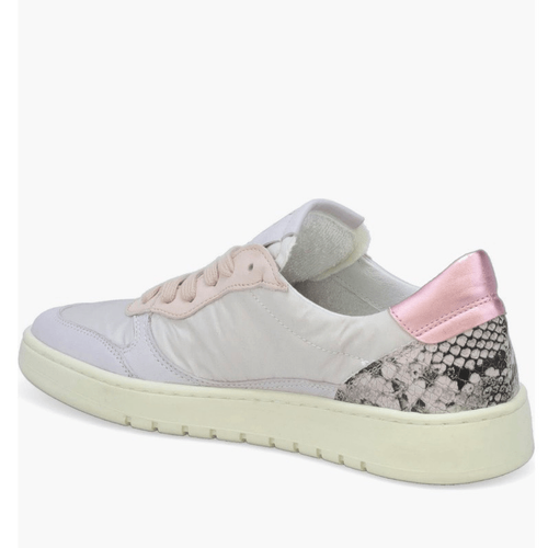 A contrasting heel with a snake print finish adds interest to a street-savvy sneaker grounded by a lightweight, platform sole.