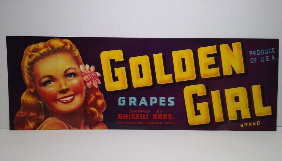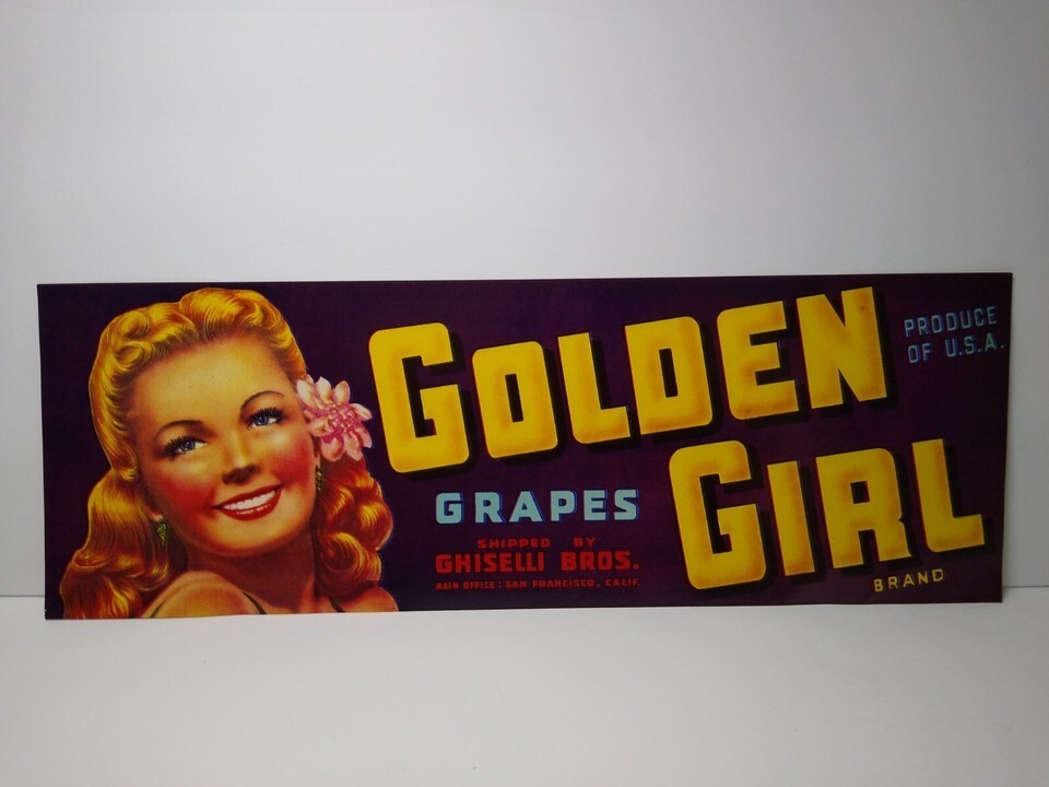 Golden Girls Crate Label Vintage Fruit Grapes Blonde Women 1940s Vintage