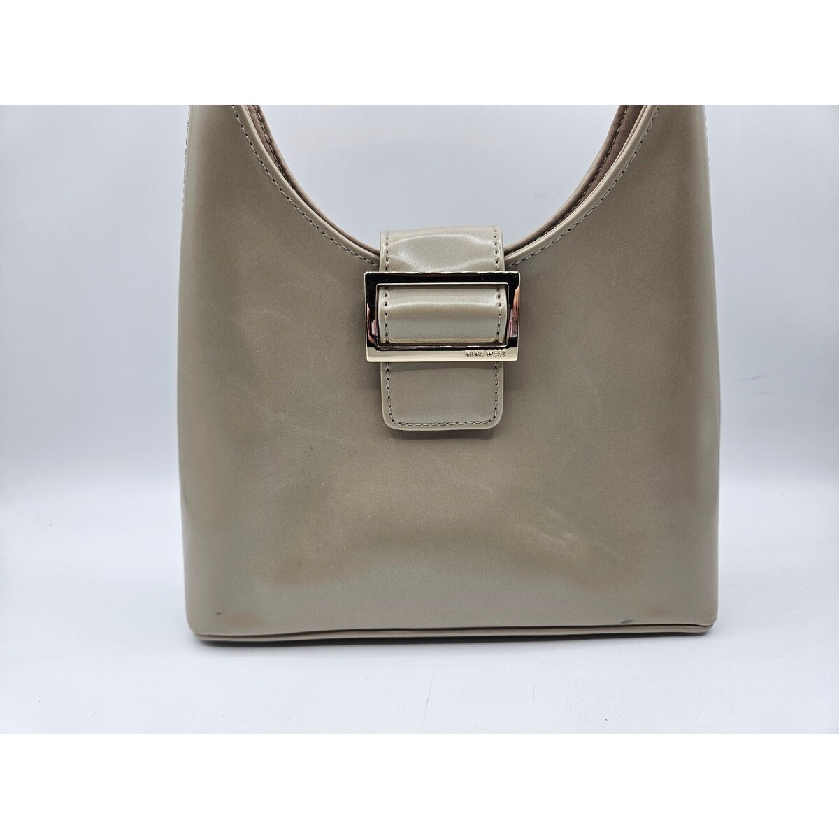 Nine West Women's Patent Leather Shoulder Bag Dark Cream Magnet Closure