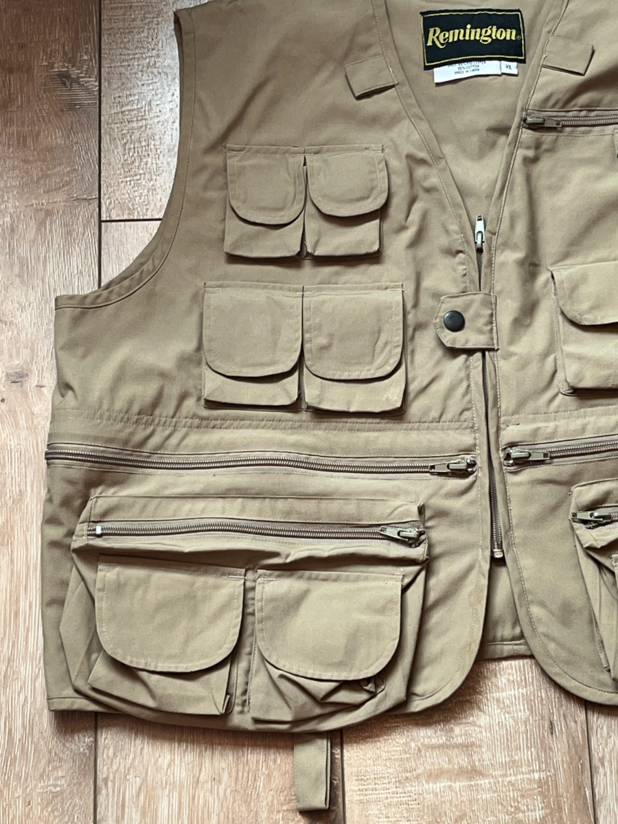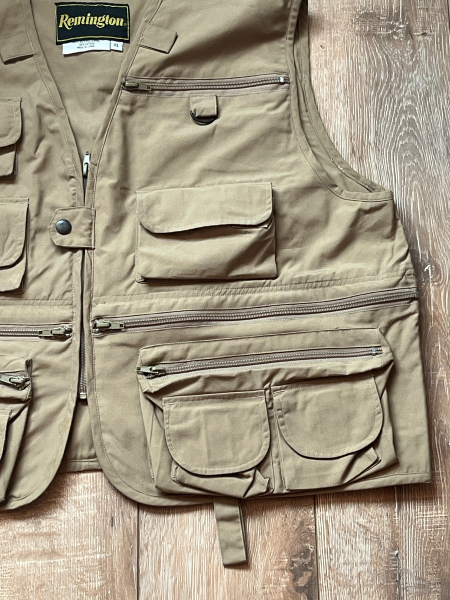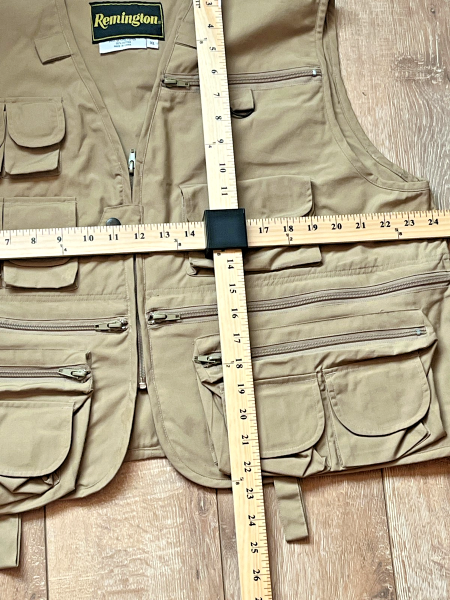 REMINGTON Vest Size XL Hunting Multi-Pocket Fly Fishing Tan Khaki Full Zip