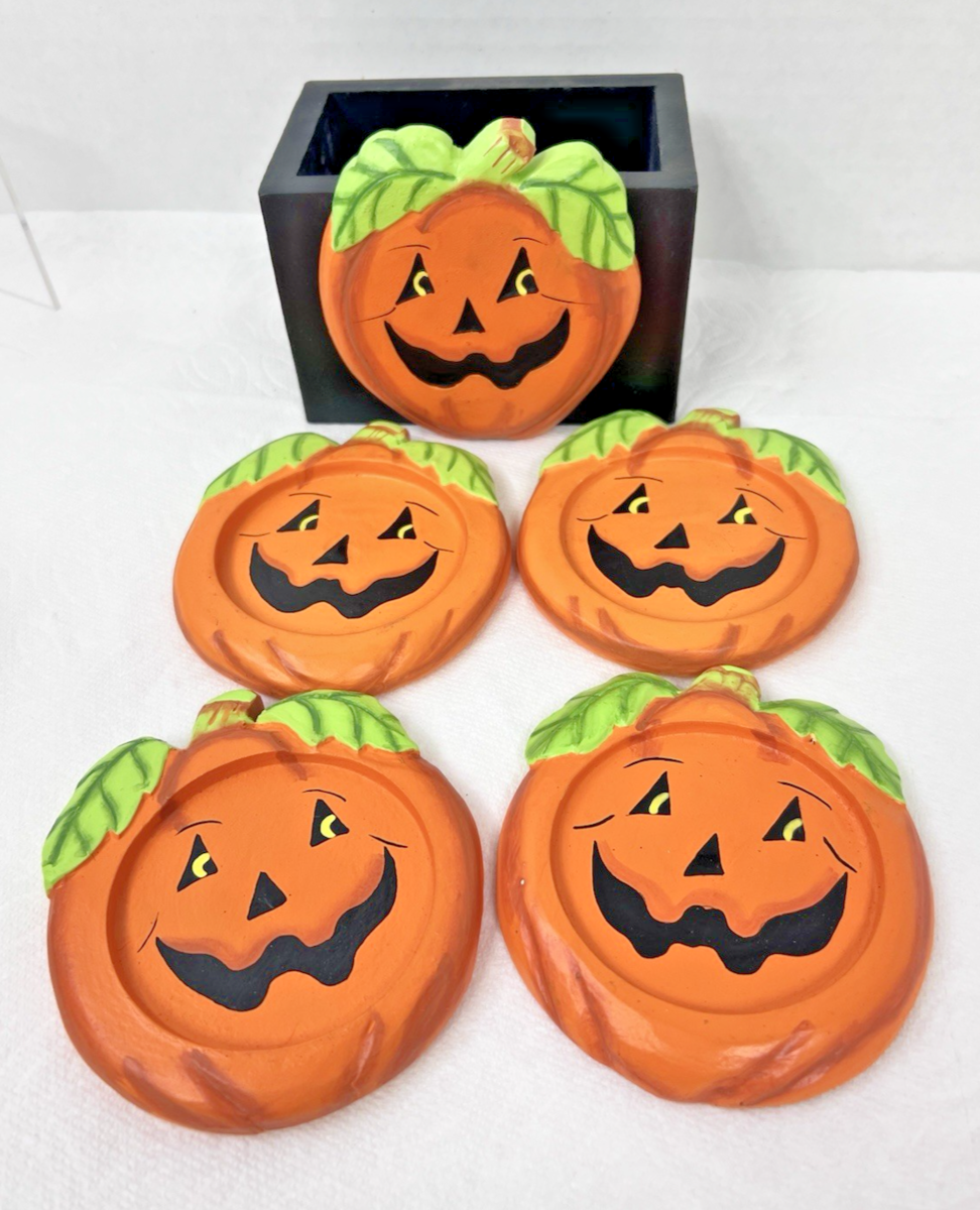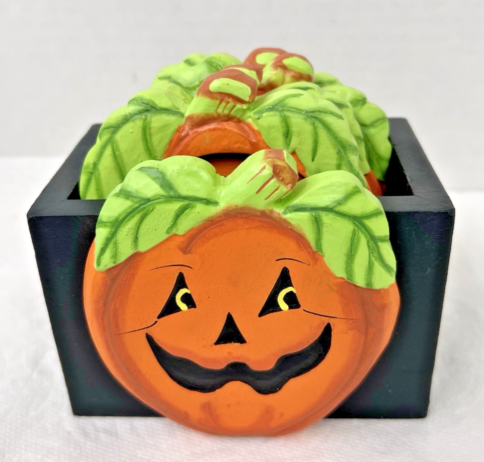 Fun Jack o? Lantern Pumpkins Four Piece Coaster Set in Case Halloween Pumpkin