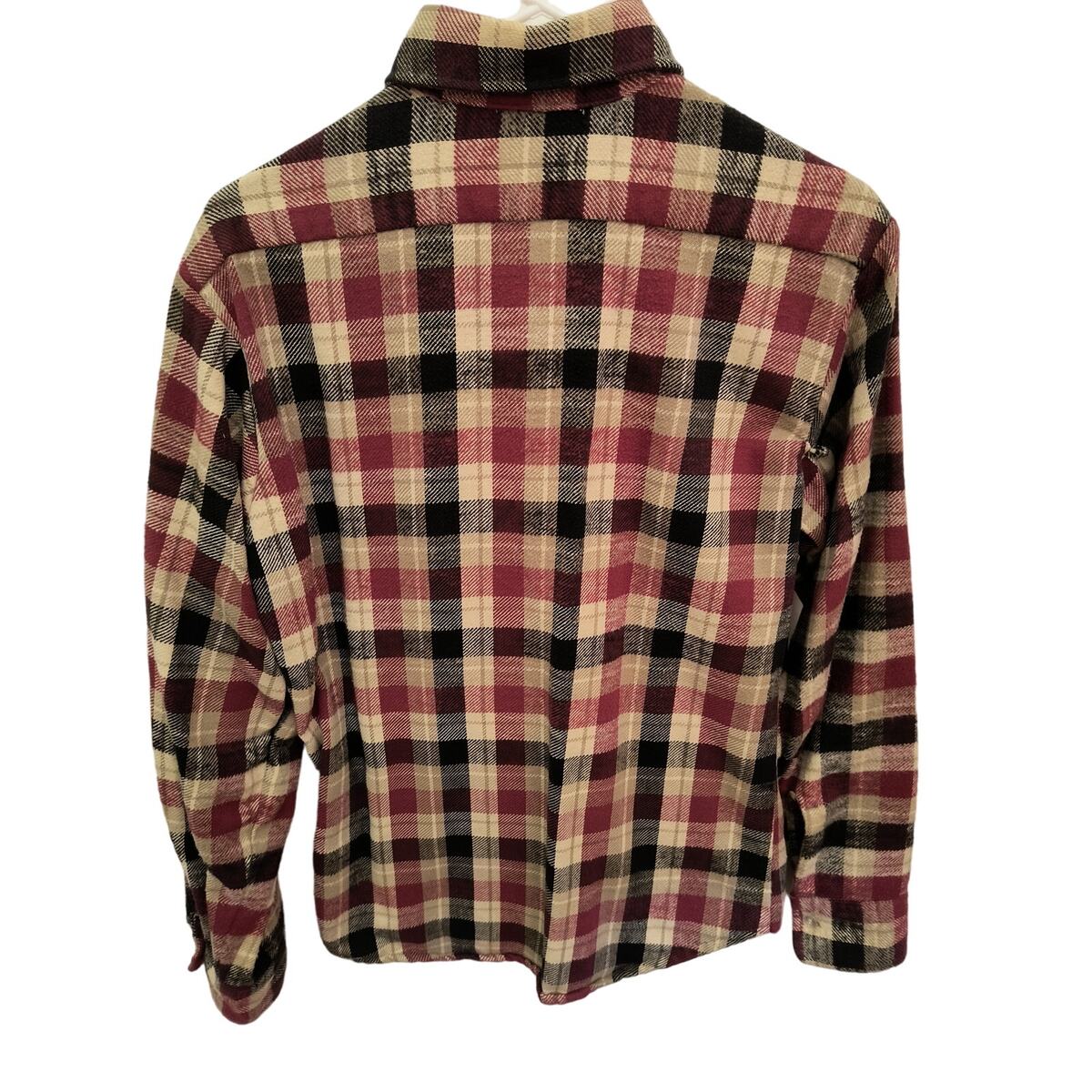 Preowned long sleeve plaid flannel shirt that has one flaw on the right back side (see photos)