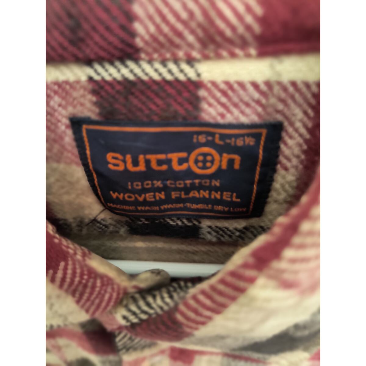 Sutton Men Clothing large red black flannel long sleeve button up shirt