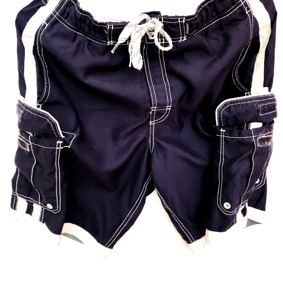 Good pre-owned condition Joe Boxer Swim Trunks Shorts Blue White Speed Dry Cargo men small size