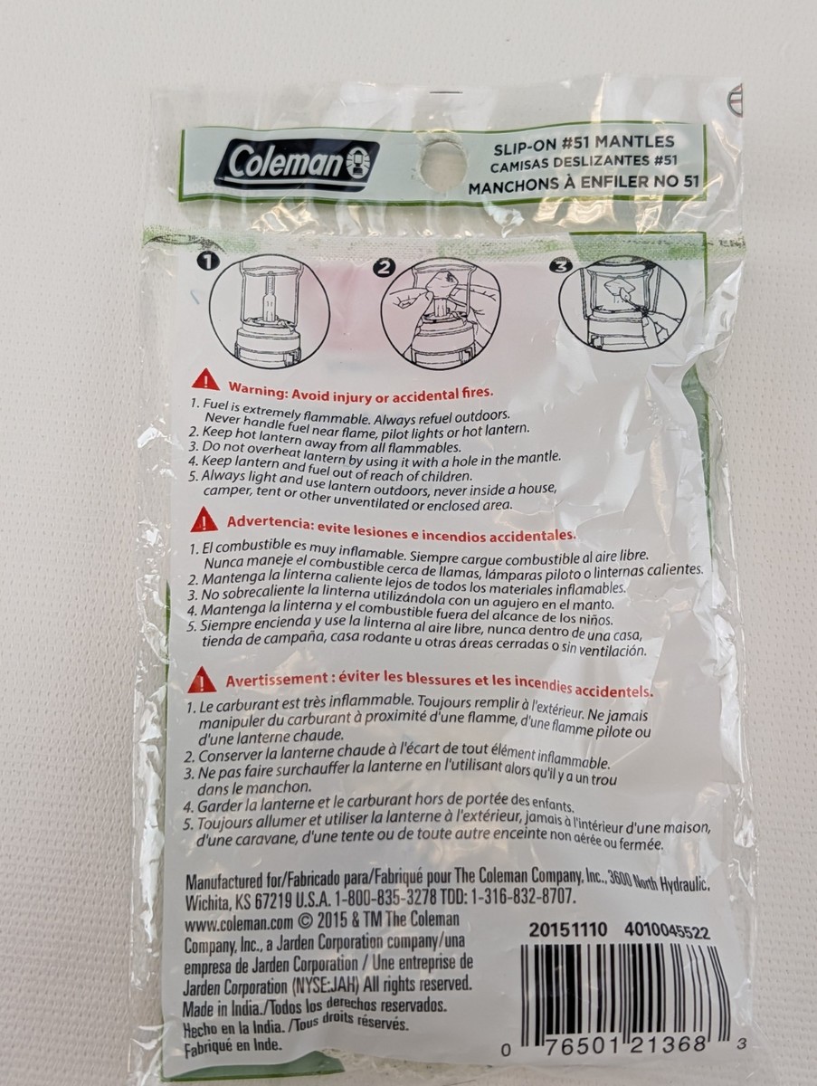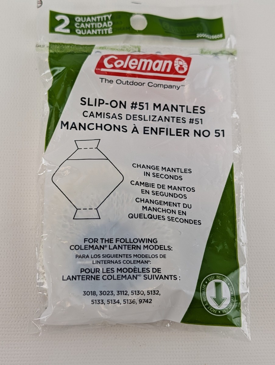 Coleman #51 Lantern Mantels Bayonet Slip On 2 Packs - 4 Mantels Total. Condition is New. Shipped with USPS Ground Advantage.