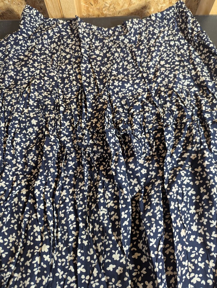The SK Company Size 20W Blue Floral Skirt is a vintage-inspired A-line skirt made from lightweight rayon knit fabric. The pleated floral pattern and knee-length design make it perfect for casual, business, or travel occasions during the summer, fall, or spring seasons. With an elastic waist and zip closure, this skirt offers both style and comfort for the modern woman looking to add a touch of femininity to her wardrobe. 36" waist and 31" length
