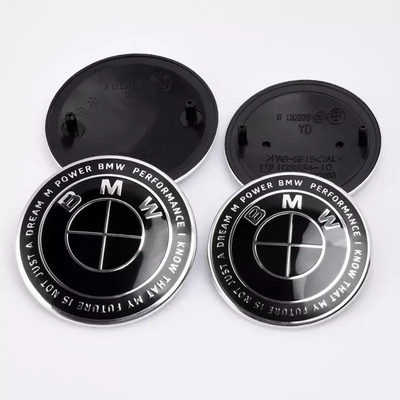 For BMW Black Emblem wheel Center Caps Badges 7PCS Set 74/74mm 56mm 45mm hood.