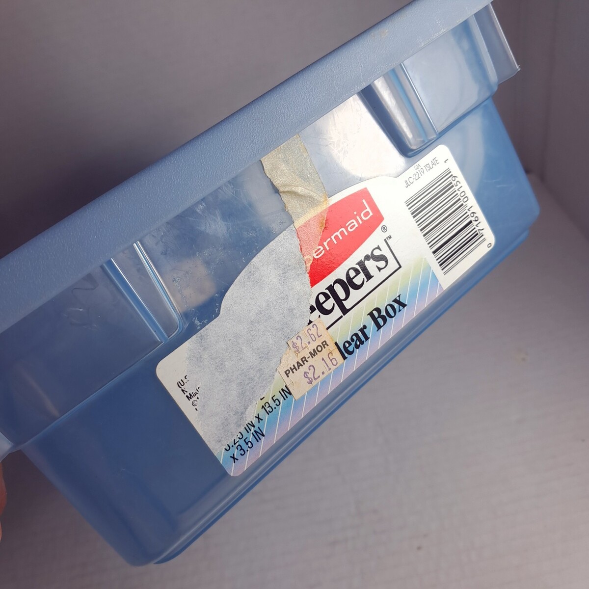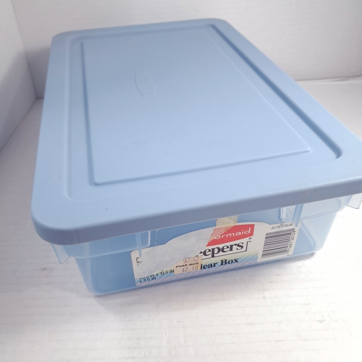 Vintage Rubbermaid 0286 Storage Box Blue clear Container Plastic Snap Shut Lid