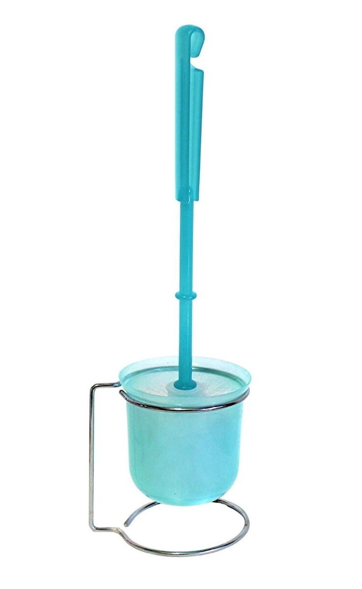 Maintain a clean and hygienic bathroom with this free-standing toilet brush set in a modern sky blue color. Designed for functionality and compact storage, this set includes one toilet brush and a matching discreet holder.