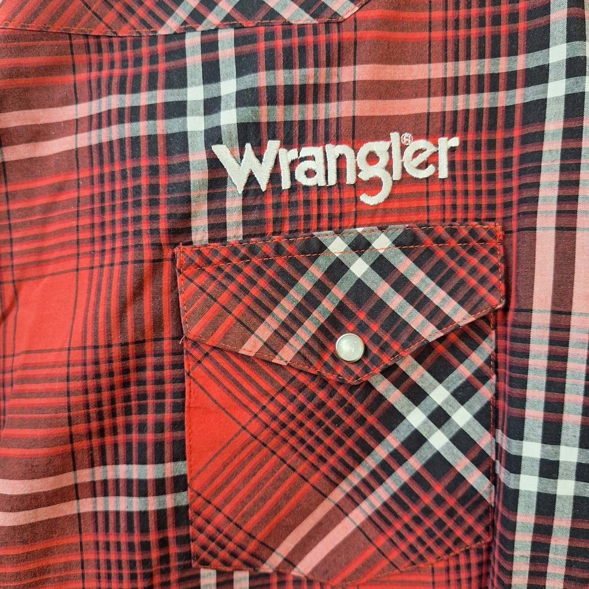 Wrangler Western Pearl Snap Rodeo Logo Shirt Red Plaid Cowboy Mens XL No Sz Tag