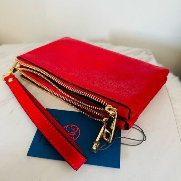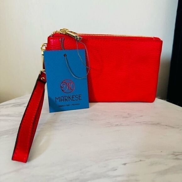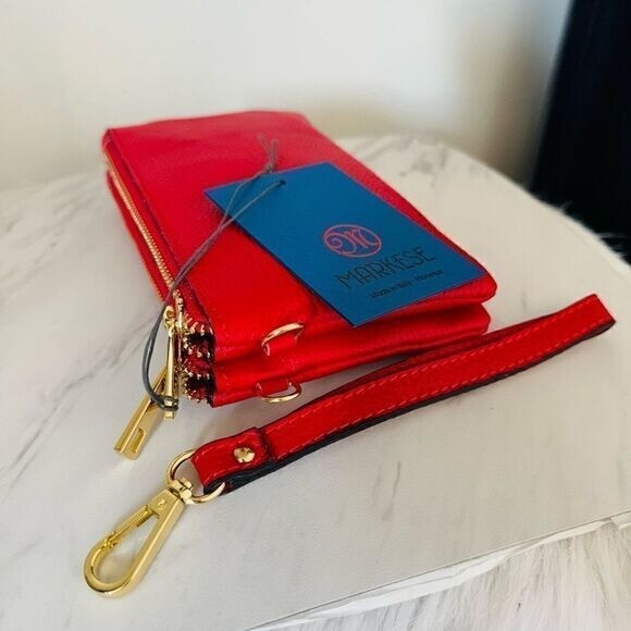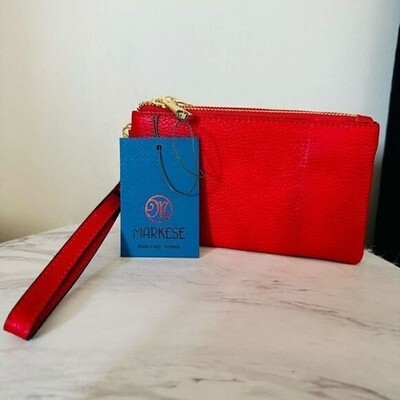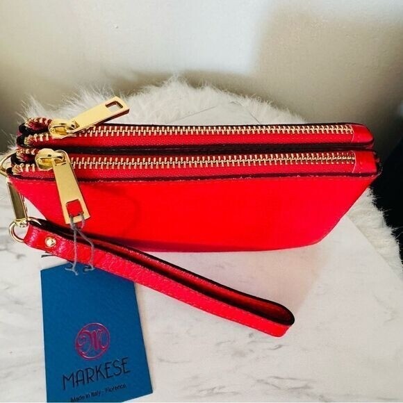 MARKESE Italian Leather Dollaro Clutch Wristlet Wallet Organizer, Red, NWT