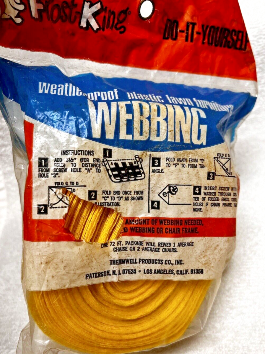 Vintage Frost King Lawn Furniture Re-Webbing MIP Yellow-White 2 1/4" wide x 72 ' long, made in USA. we have other colors for sale and we can combined shipping!