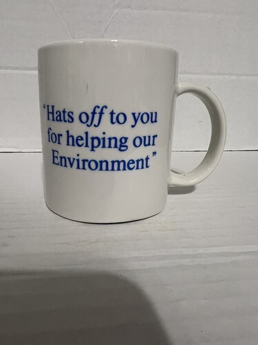 The back of the mug says ?hats off to you for helping our environment?
