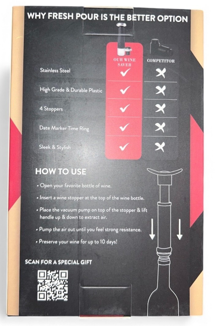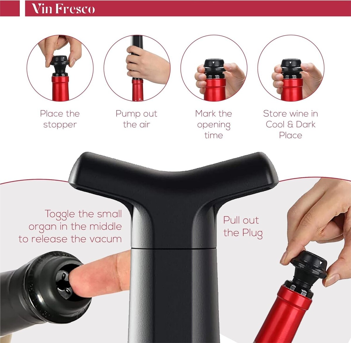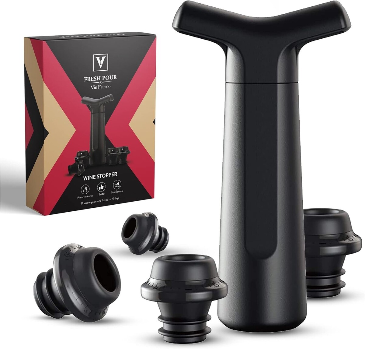 11x Fresh Pour x Vin Fresco - Wine Saver Pump and Preserver with 4 Stoppers