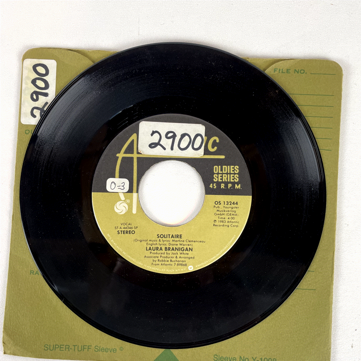 This 45 RPM single offers a fantastic opportunity to own these memorable songs on their original format. The vinyl features the distinctive Atlantic Records label design for the "Oldies Series," noting the original copyright dates of 1983 for "Solitaire" and 1982 for "Gloria." A must-have for any enthusiast of 80s music, pop rock, or Laura Branigan's enduring legacy. Perfect for DJs, collectors, or anyone looking to add a piece of music history to their collection.