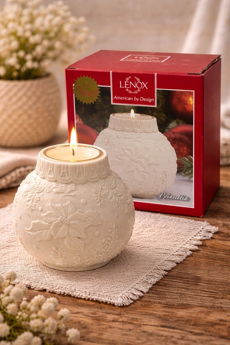 Lenox Ornamental Glow Poinsettia Votive Candle Holder 4 Inch Ivory Porcelain
