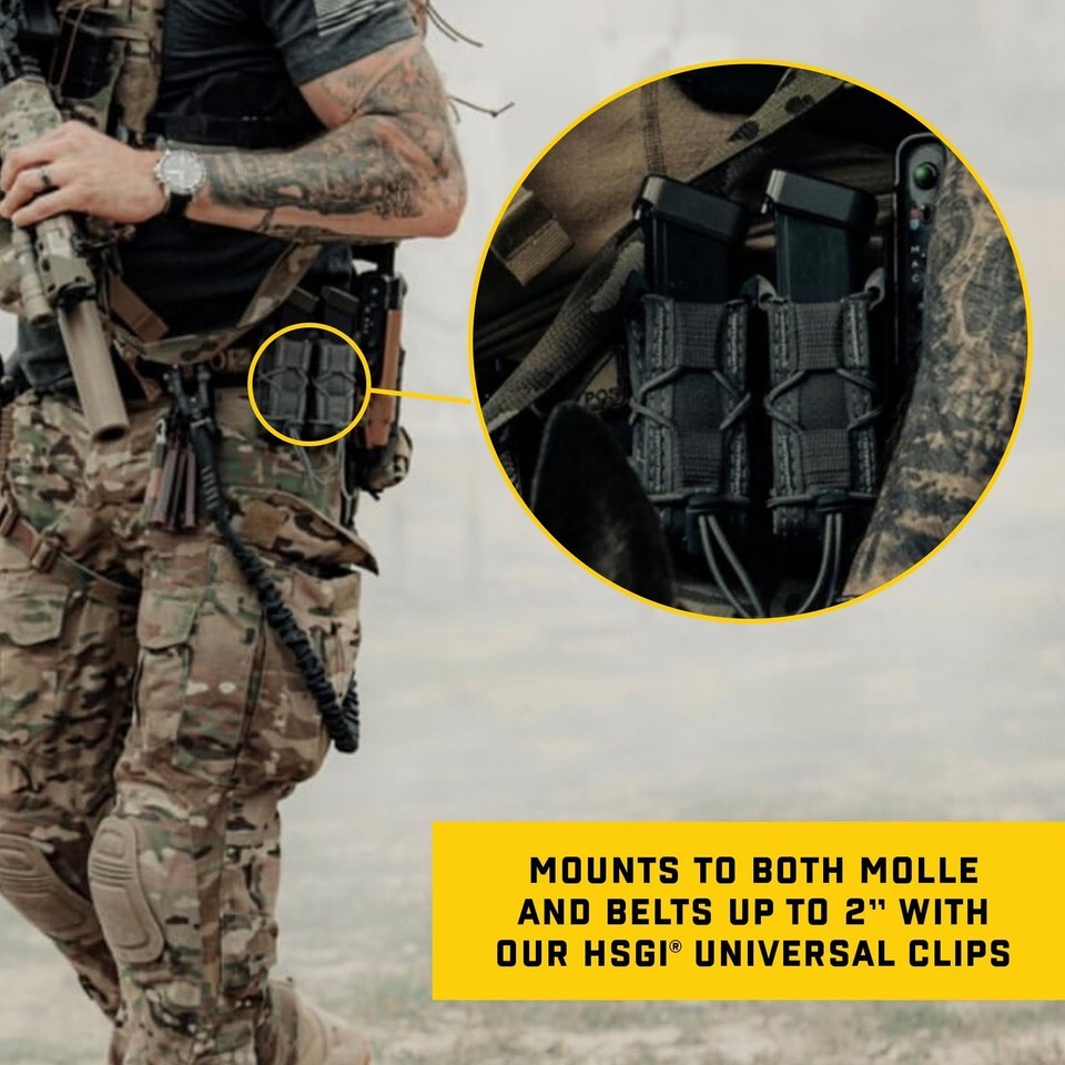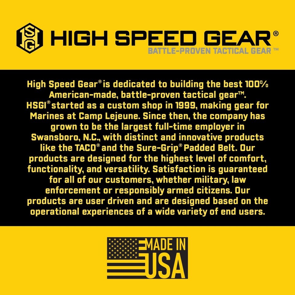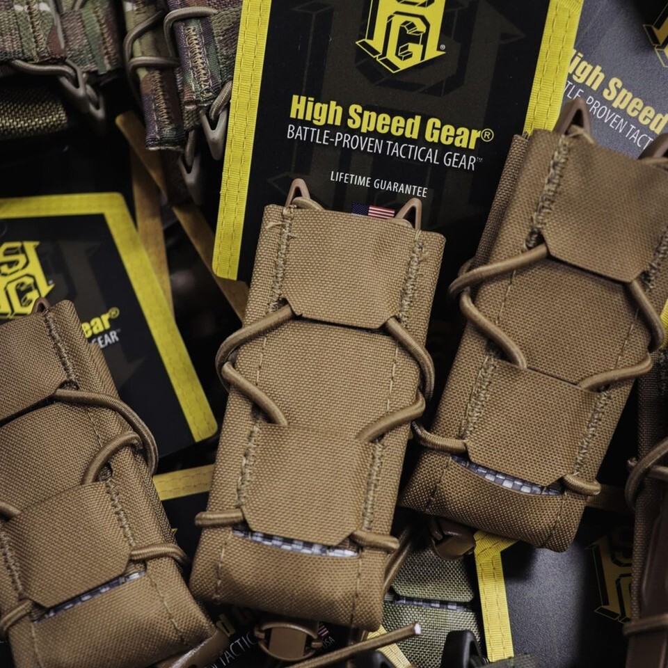 ADJUSTABLE RETENTION: The laser-cut nylon laminate wrapped over a woven thermoplastic core, shock cord retention, and molded polymer sides keep items firmly in place during movement but allow for smooth, quick and quiet retrieval when needed.,SLEEKER AND LIGHTER: Measuring 4.25" x 1.75" x 1.25", and weighing 0.079 lbs, it?s almost 20% lighter than the original. It can hold magazines, multi-tools, knives and smaller flashlights. There?s an open top for speedy draws.,MOLLE COMPATIBILITY: oe inch hole allows effortless attachment to your MOLLE belts, vests, and backpacks etc. Included is a HSGI clip, so it can weave seamlessly into all MOLLE platforms. Compatible with HSGI OTR Covers for open or closed carry options.,MILITARY-GRADE, PROFESSIONAL QUALITY: Trusted by the Military and law enforcement, High Speed Gear products feature unmatched materials, innovative technology, and industry leading design and construction.,ONE-STOP SHOP: Enjoy the High Speed Gear suite of products including belts, admin pouches, medical pouches, plate carriers, shoulder pads, and utility pouches. All products are built to last and come with a lifetime guarantee!