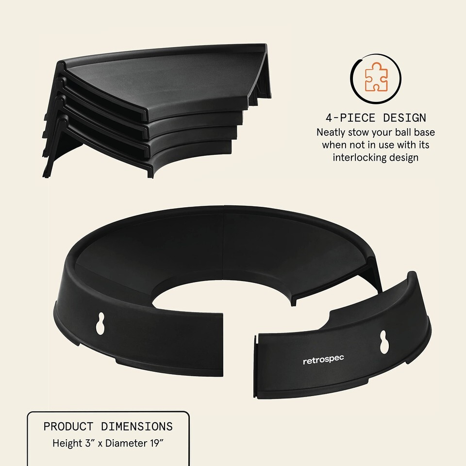 The Retrospec Exercise Ball Base provides stability for yoga balls, pregnancy balls, and physio balls ranging from 45-75cm. Made from durable ABS plastic, this versatile stand keeps your exercise ball securely in place during workouts or while using it as an office chair. The base features grooves for resistance bands, enhancing your yoga, Pilates, and strength training routines. Ideal for beginners seeking extra stability or anyone wanting their exercise ball to stay put. Note: Avoid using on slippery surfaces.