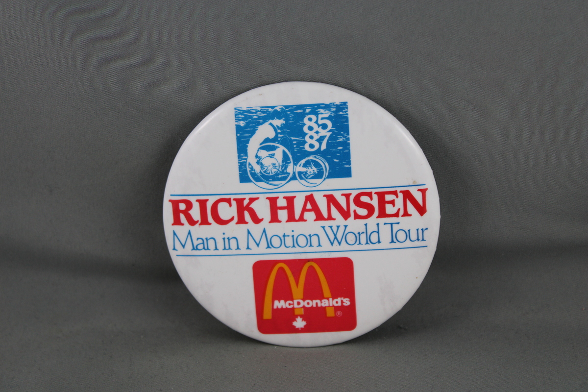Vintage McDonalds Pin - Rick Hansen Man in Motion Tour - Celluloid Pin