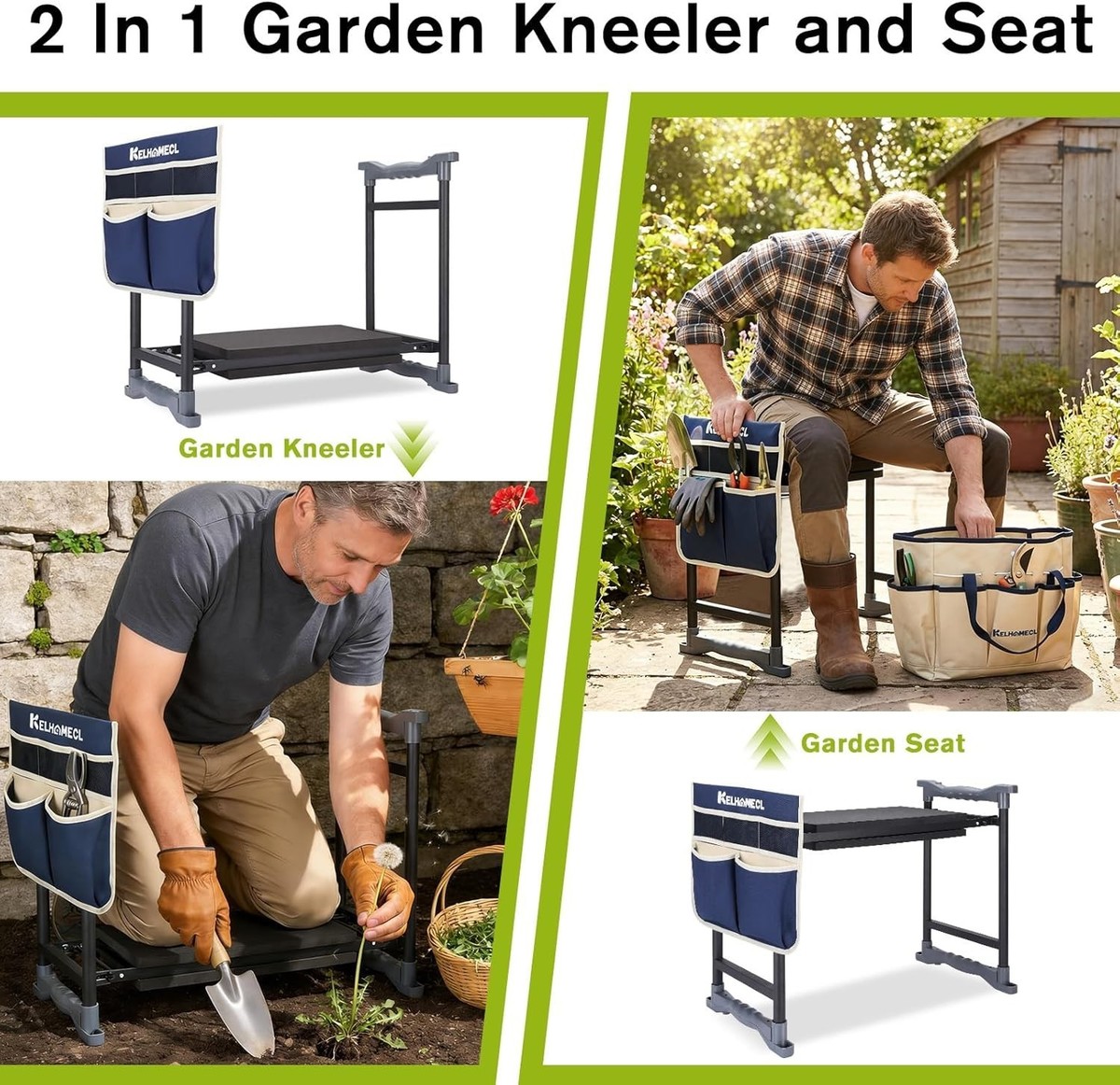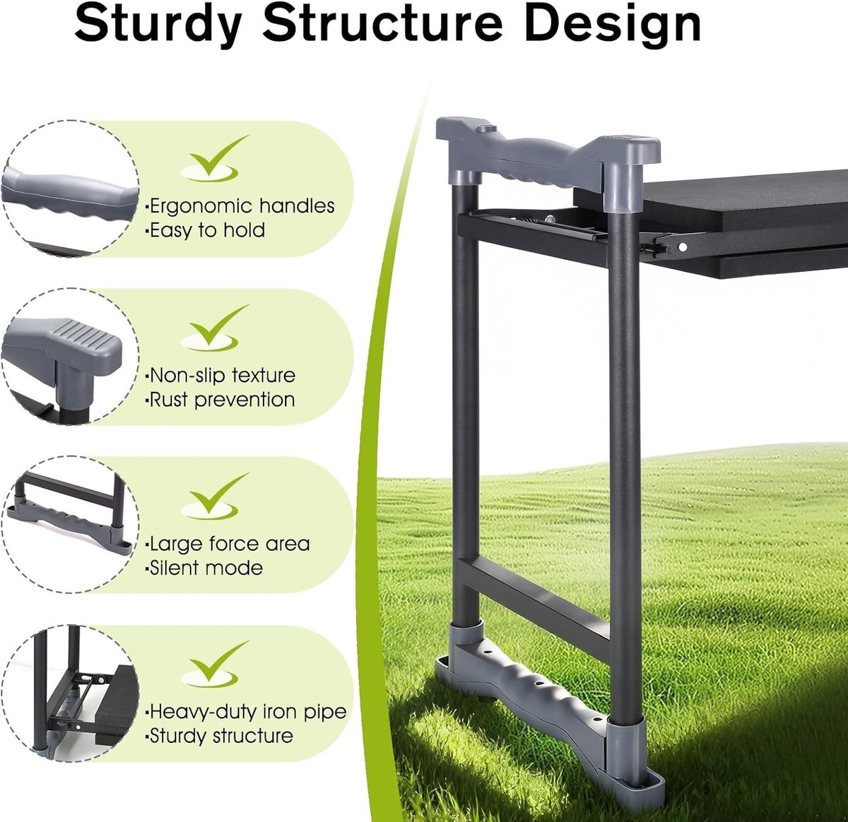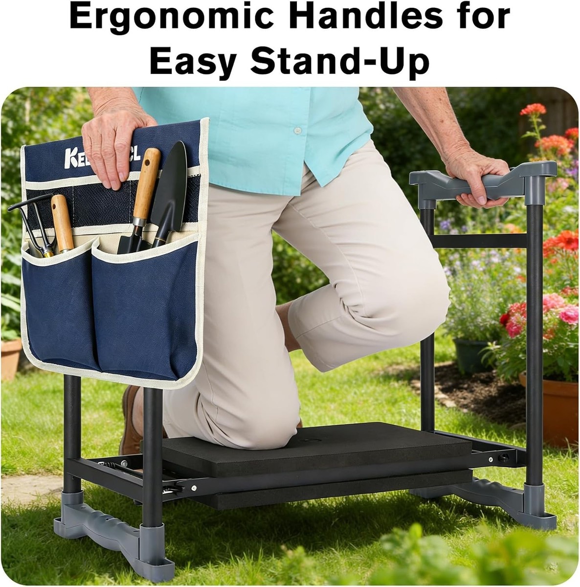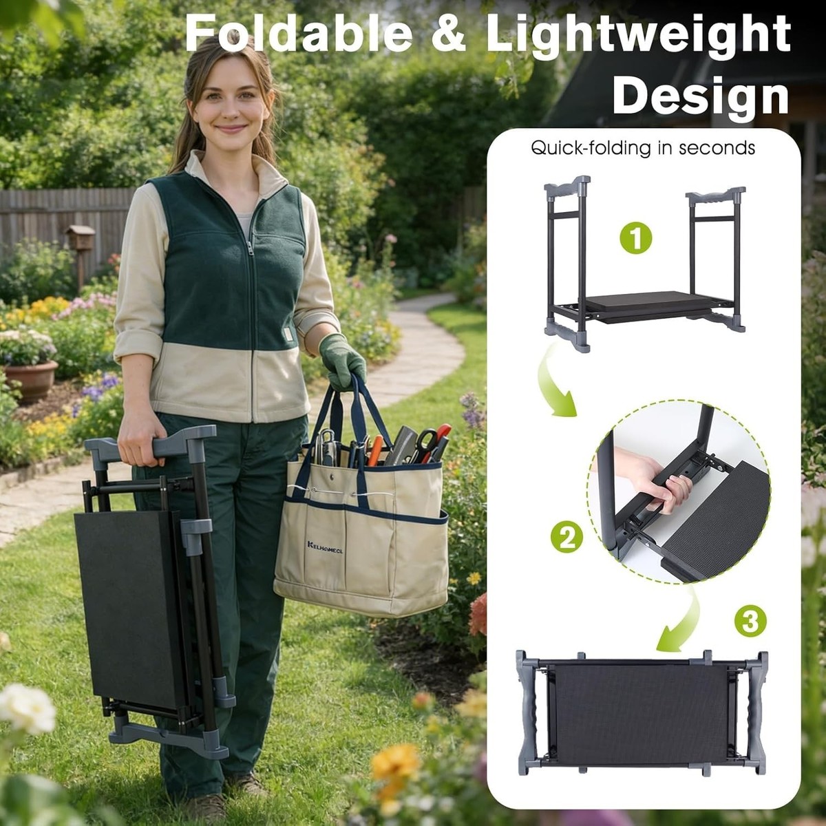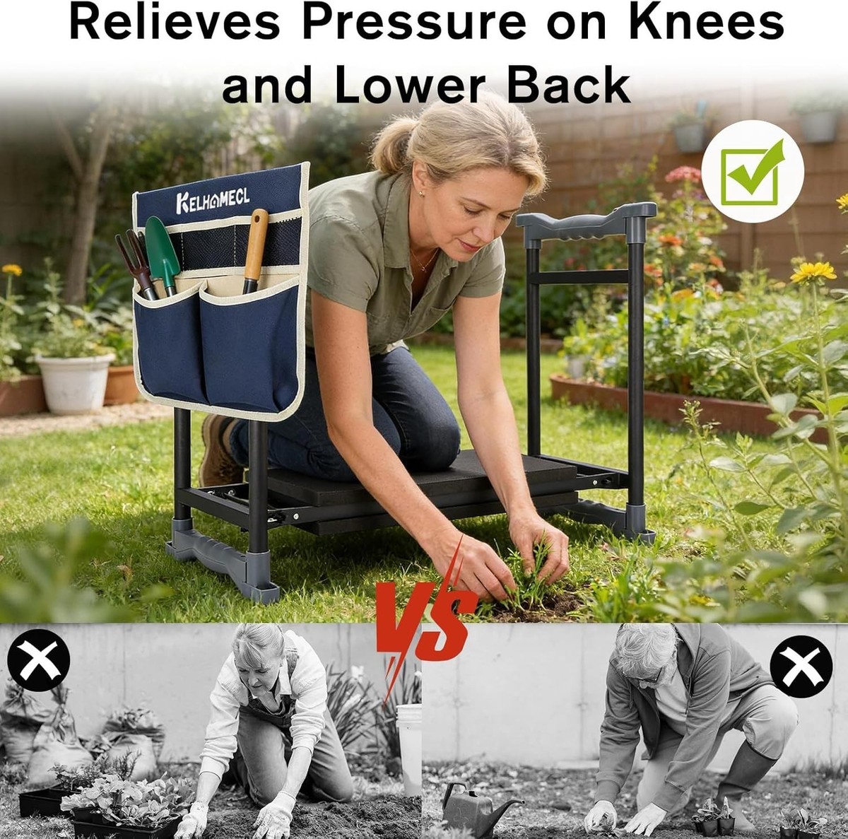 2-in-1 Kneeler Seat: Clever flip design easily switches between kneeling and sitting, while ergonomic side handles help you stand up safely and effortlessly.