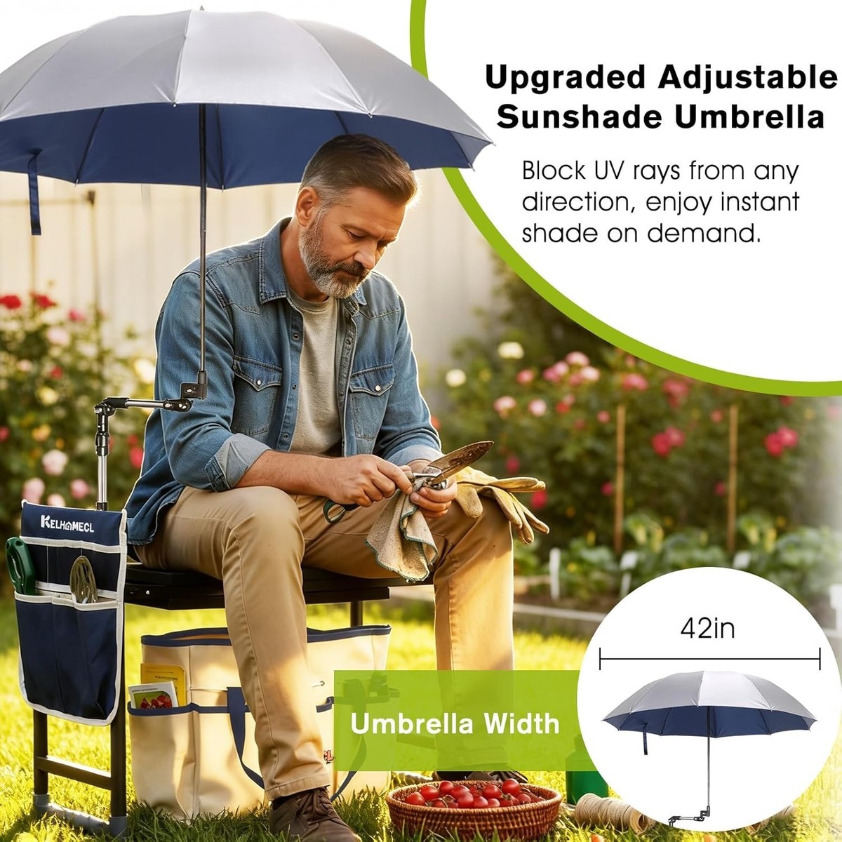 Adjustable Umbrella Garden Kneeler and Seat - Heavy Duty, Portable & Comfortable