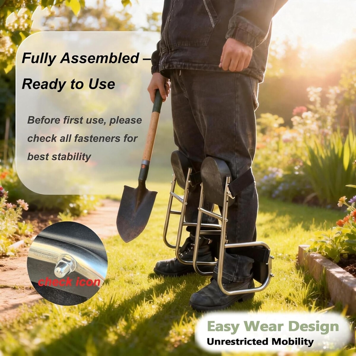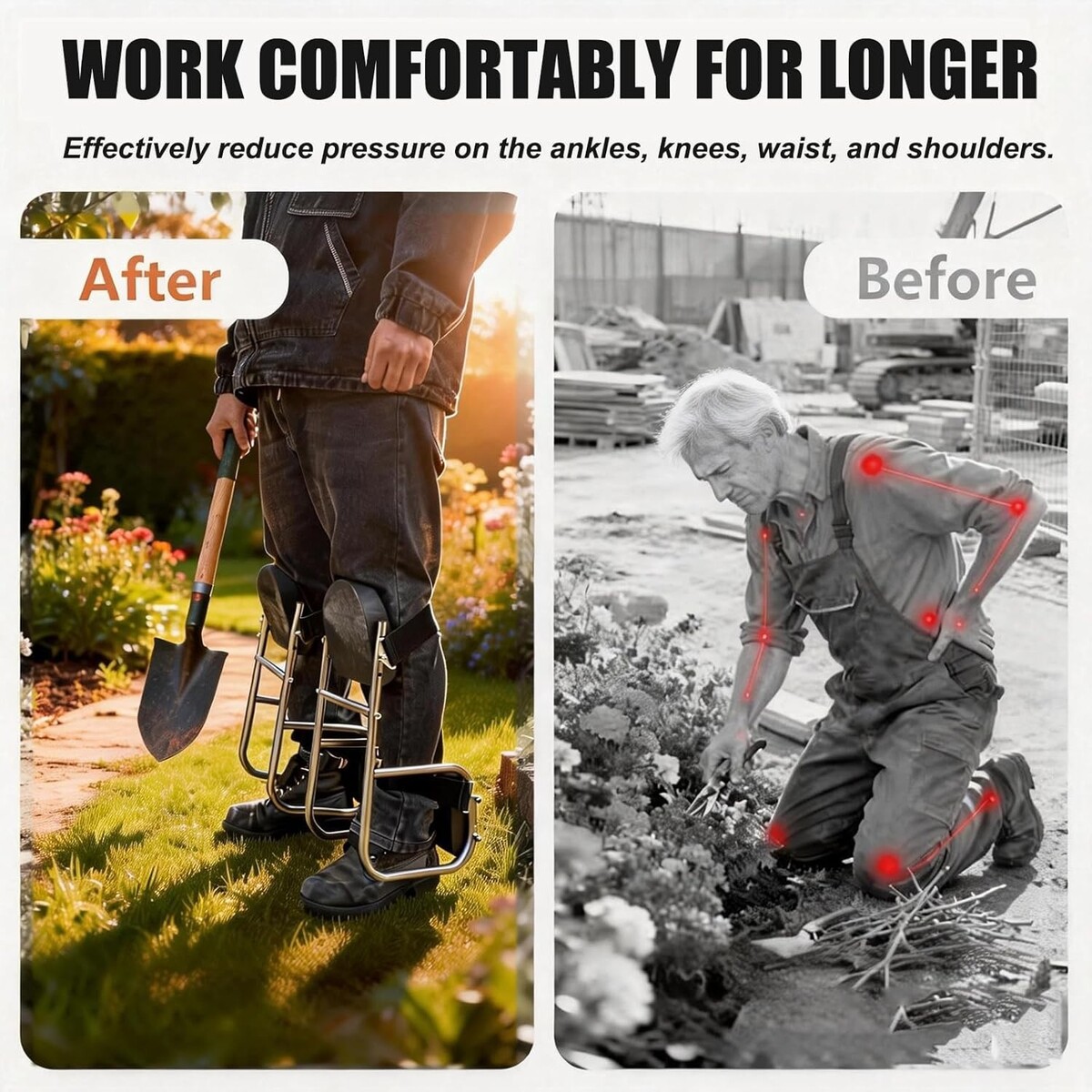 2-Pack Ergonomic Gardening Knee Seat with Thick EVA Foam & Stainless Steel Frame