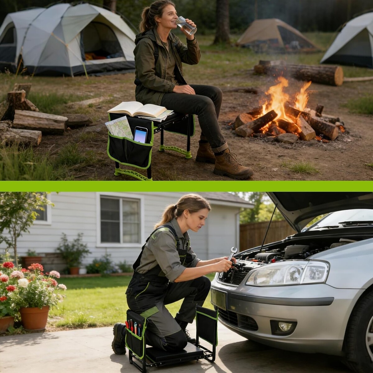 All-Terrain Stability: Non-slip rubber feet deliver excellent grip to prevent slipping or shifting on wet soil, gravel, patio surfaces, and uneven ground. Versatile enough to serve as a gardening kneeler, fishing stool, or picnic bench for reliable performance across diverse outdoor conditions.